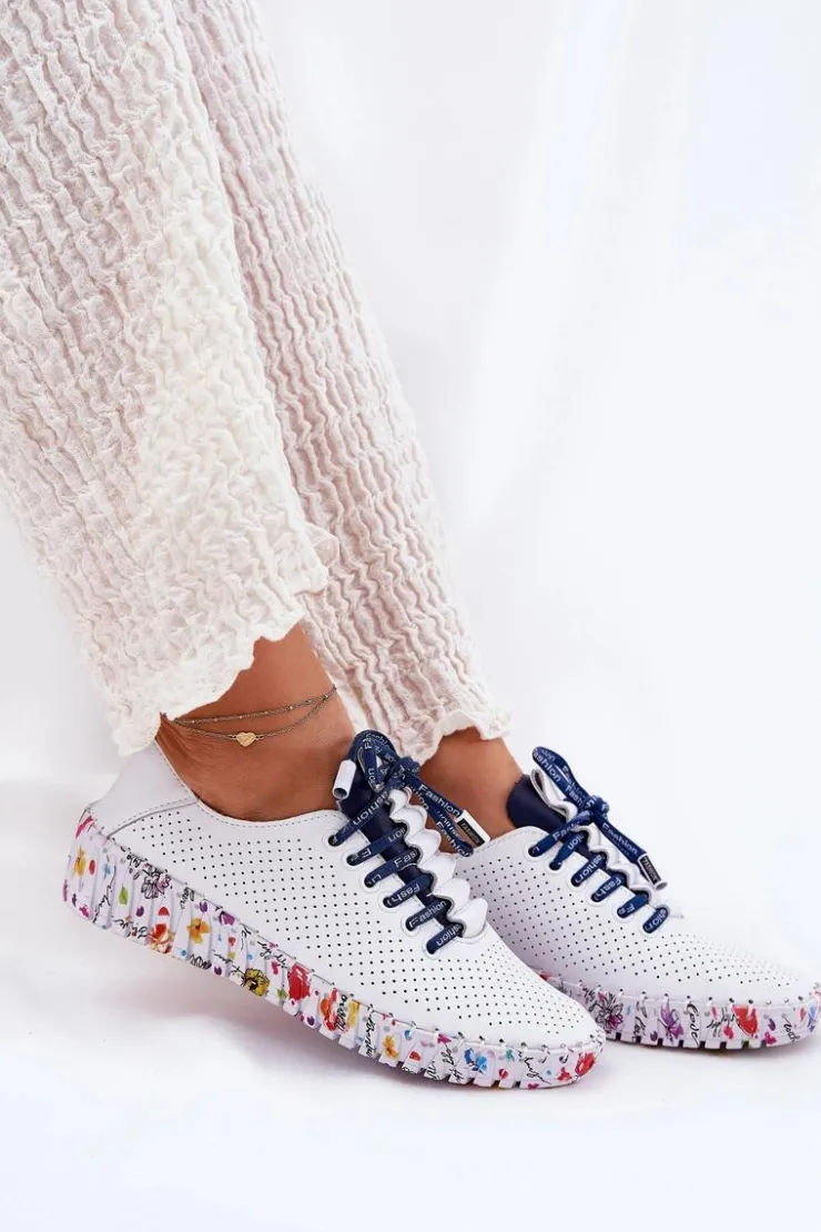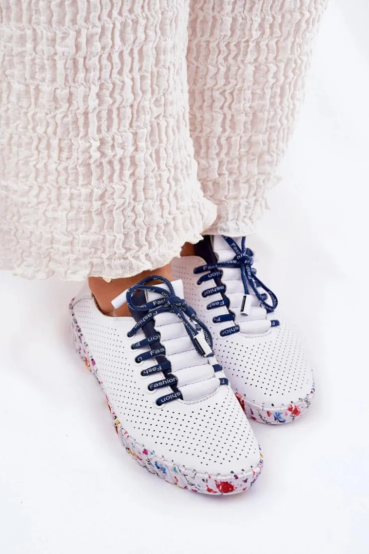 Półbuty damskie wykonane z naturalnej skóry. Osadzone na wzorzystej platformie z delikatnym koturnem, łączą wygodę z modnym designem. Zaokrąglone noski zapewniają komfort przez cały dzień, a sznurowany model umożliwia idealne dopasowanie do stopy. Miękka wkładka dodatkowo zwiększa wygodę noszenia. Te półbuty będą doskonałym wyborem do codziennych stylizacji, wprowadzając do nich subtelną elegancję i lekkość. Przy wyborze rozmiaru prosimy sugerować się tabelą rozmiarów.