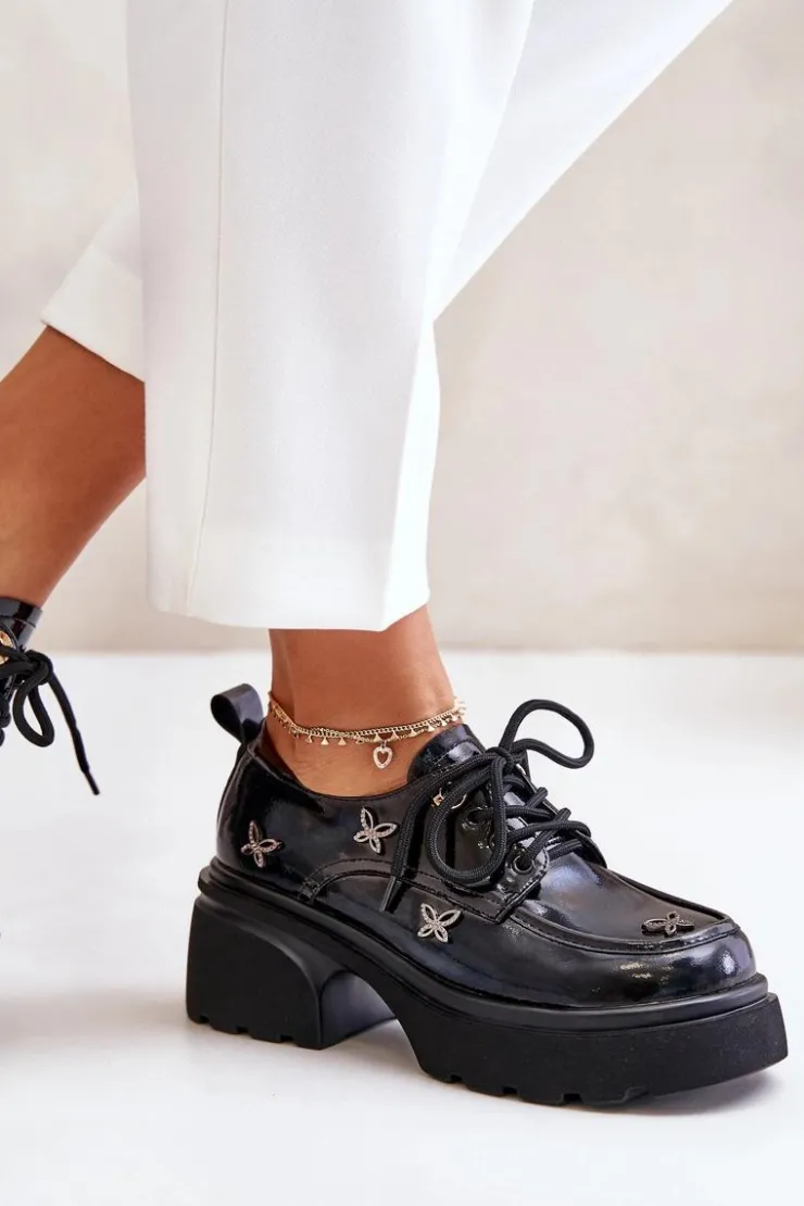 Damskie półbuty wykonane z naturalnej skóry, łączące w sobie elegancję i wyjątkowy styl. Ozdobione subtelnymi detalami, które przyciągają wzrok. Model ten posiada zaokrąglone noski oraz klasyczne sznurowanie, które gwarantuje idealne dopasowanie do stopy. Doskonały wybór zarówno na co dzień, jak i na bardziej formalne okazje, podkreślając każdą stylizację. Przy wyborze rozmiaru prosimy sugerować się tabelą rozmiarów.