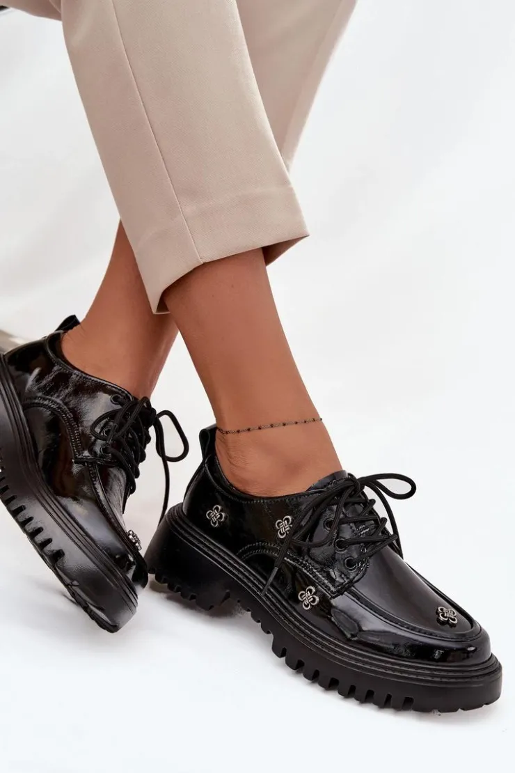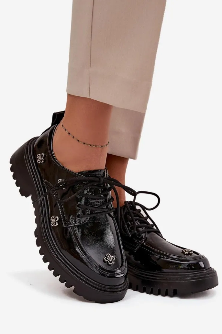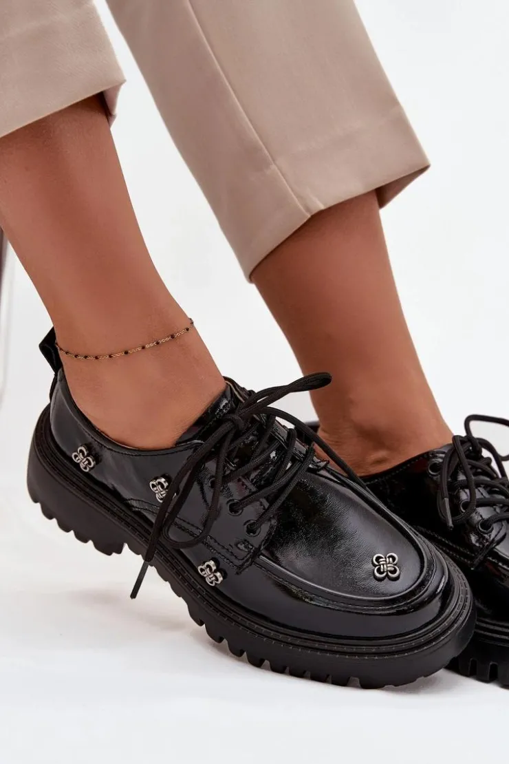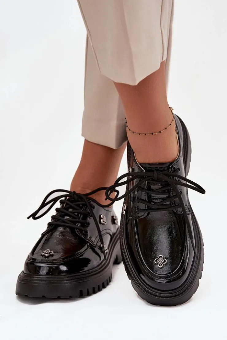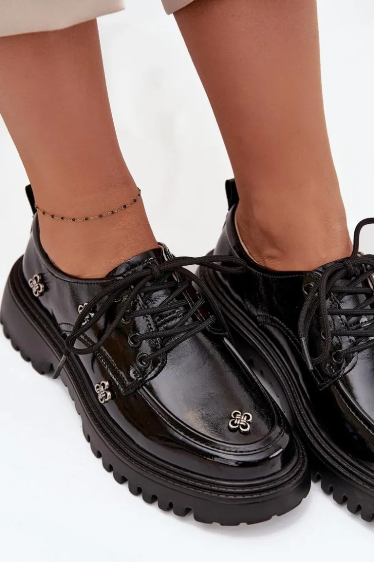 Półbuty damskie marki Artiker wykonane z naturalnej skóry. Osadzone na platformie z płaskim obcasem zapewniają komfort noszenia przez cały dzień. Klasyczne sznurowanie gwarantuje dobre dopasowanie, a urocze przypinki dodają oryginalnego i dziewczęcego charakteru. To idealny model do codziennych stylizacji. Przy wyborze rozmiaru prosimy sugerować się tabelą rozmiarów.