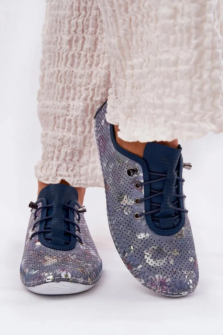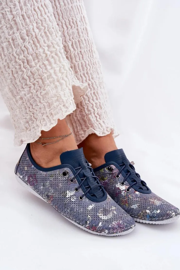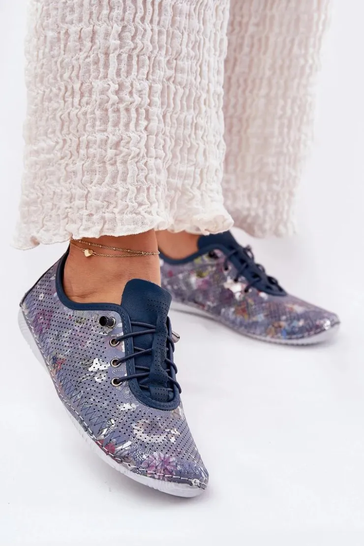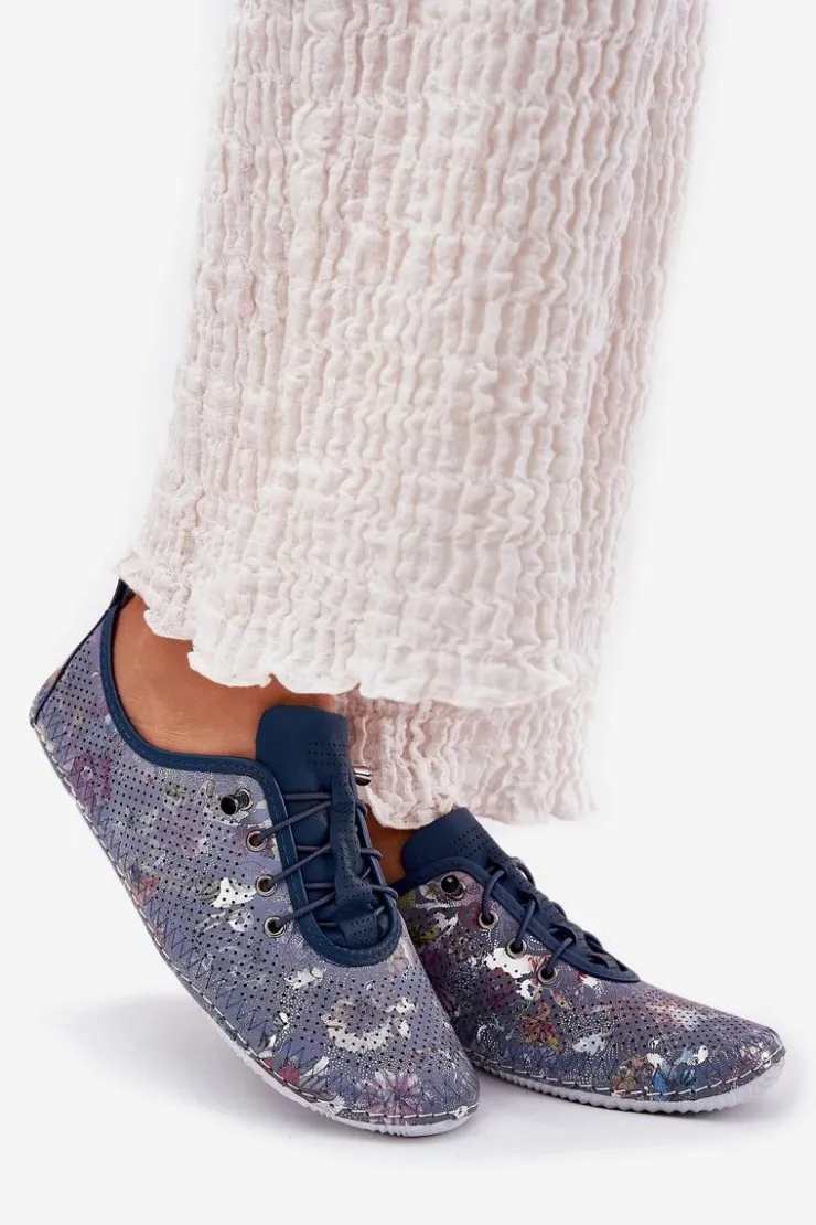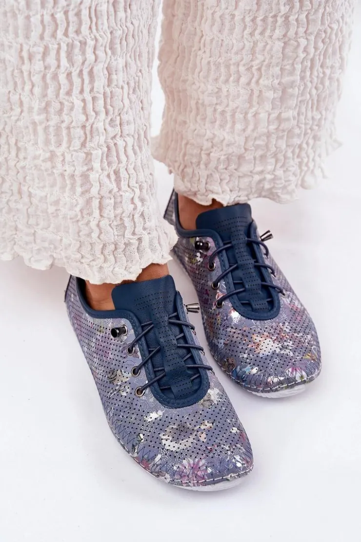 Artiker Półbuty Skórzane*Półbuty Damskie Ze Skóry Naturalnej Wzorzyste 56C2691 e Niebieski