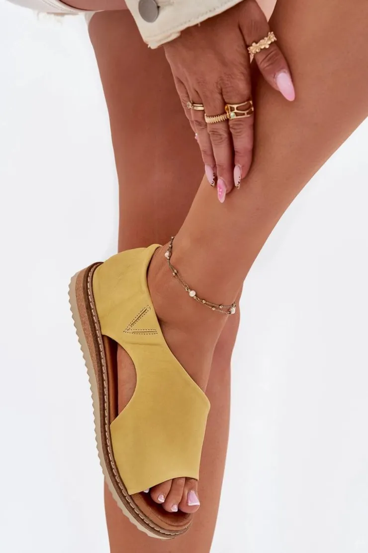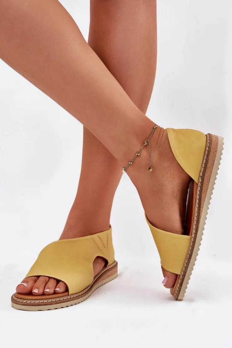 Artiker Sandały Płaskie*Skórzane Sandały Damskie 46C1015 Żółte Żółty
