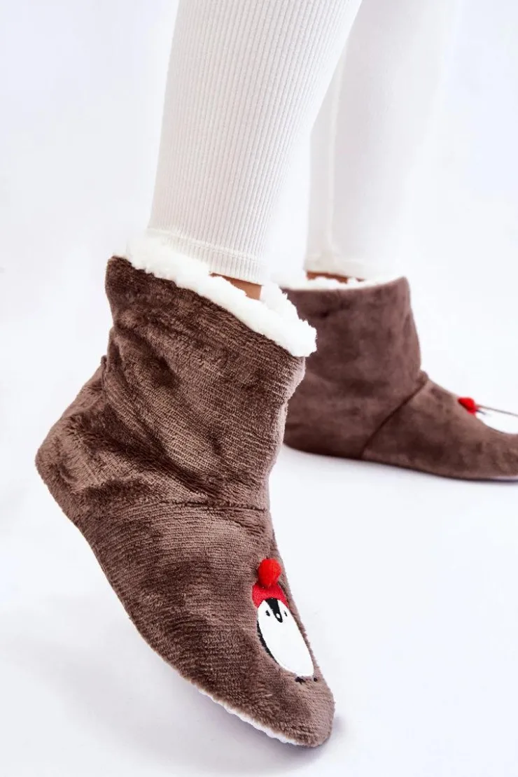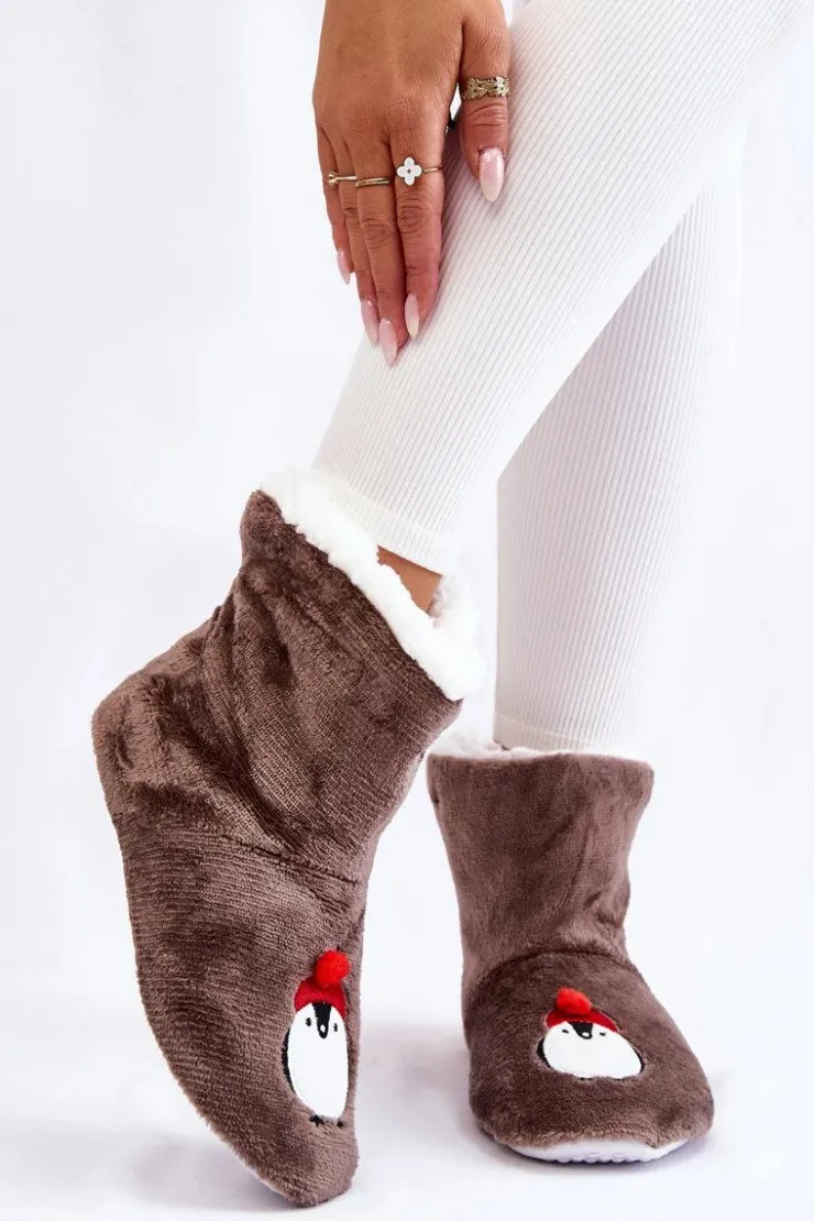 Idealne papcie damskie dla każdego zmarzlucha! Zostały wykonane z miękkiego materiału tekstylnego. Wewnątrz posiadają ocieplenie w postaci miękkiego kożuszka. Podeszwa z gumowego tworzywa z wypustkami jest antypoślizgowa. Papcie te świetnie izolują przed zimnem. Niezwykle wygodne i komfortowe podczas użytkowania. Ozdobione z przodu uroczym pingwinkiem. Przy wyborze rozmiaru prosimy kierować tabelą rozmiarów.