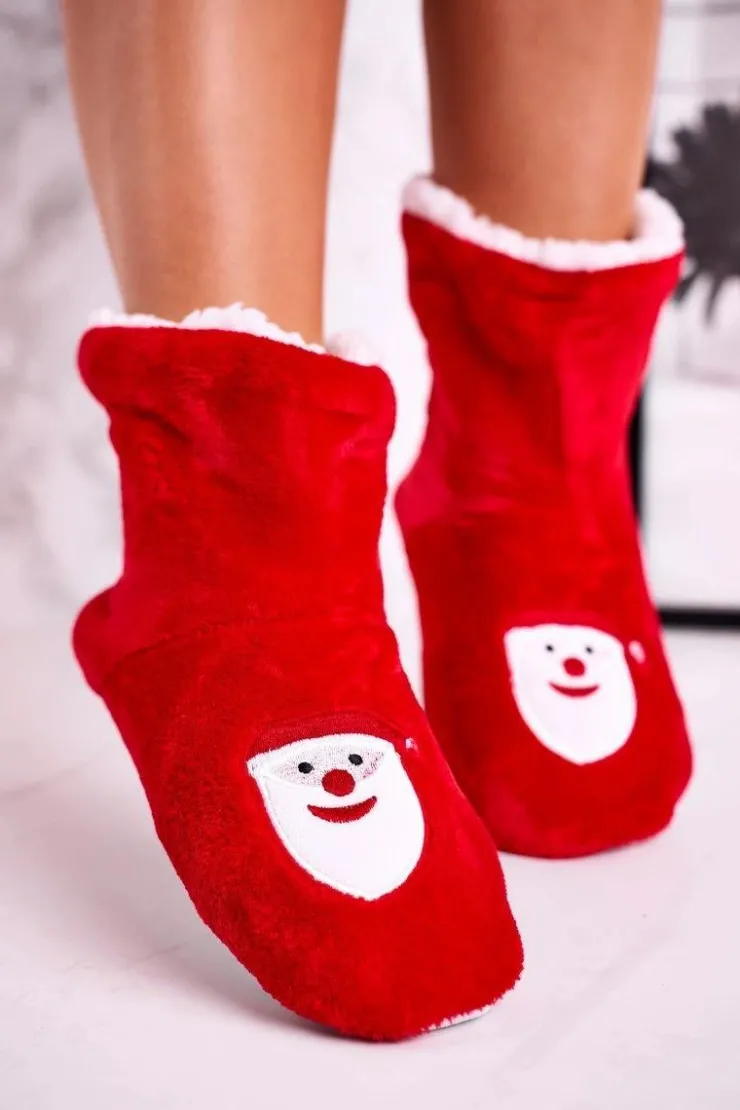 Aura.via Kapcie Klasyczne*Świąteczne Papcie Z Mikołajem Ocieplone Kożuszkiem Holly