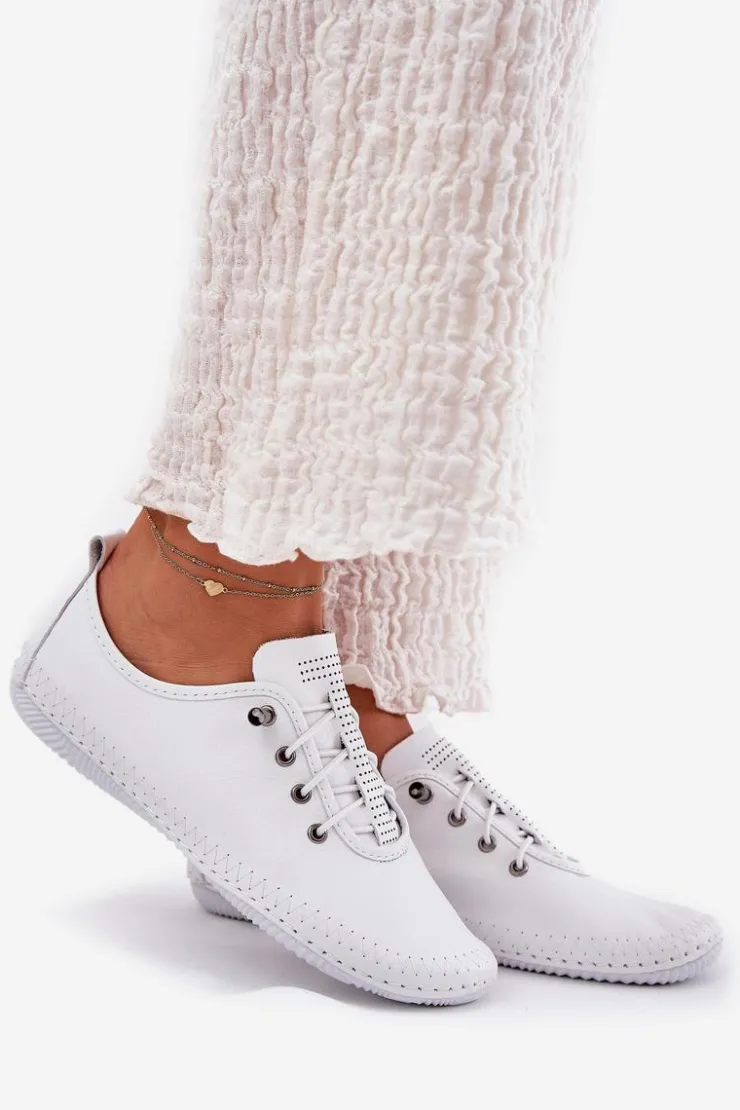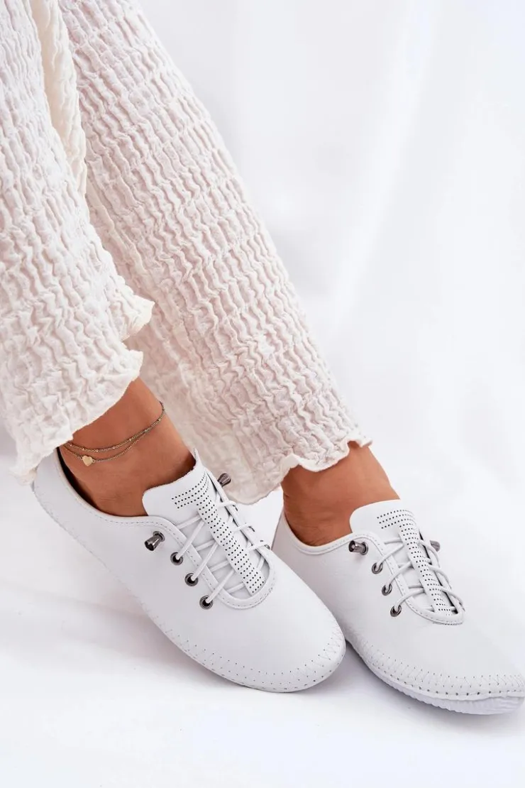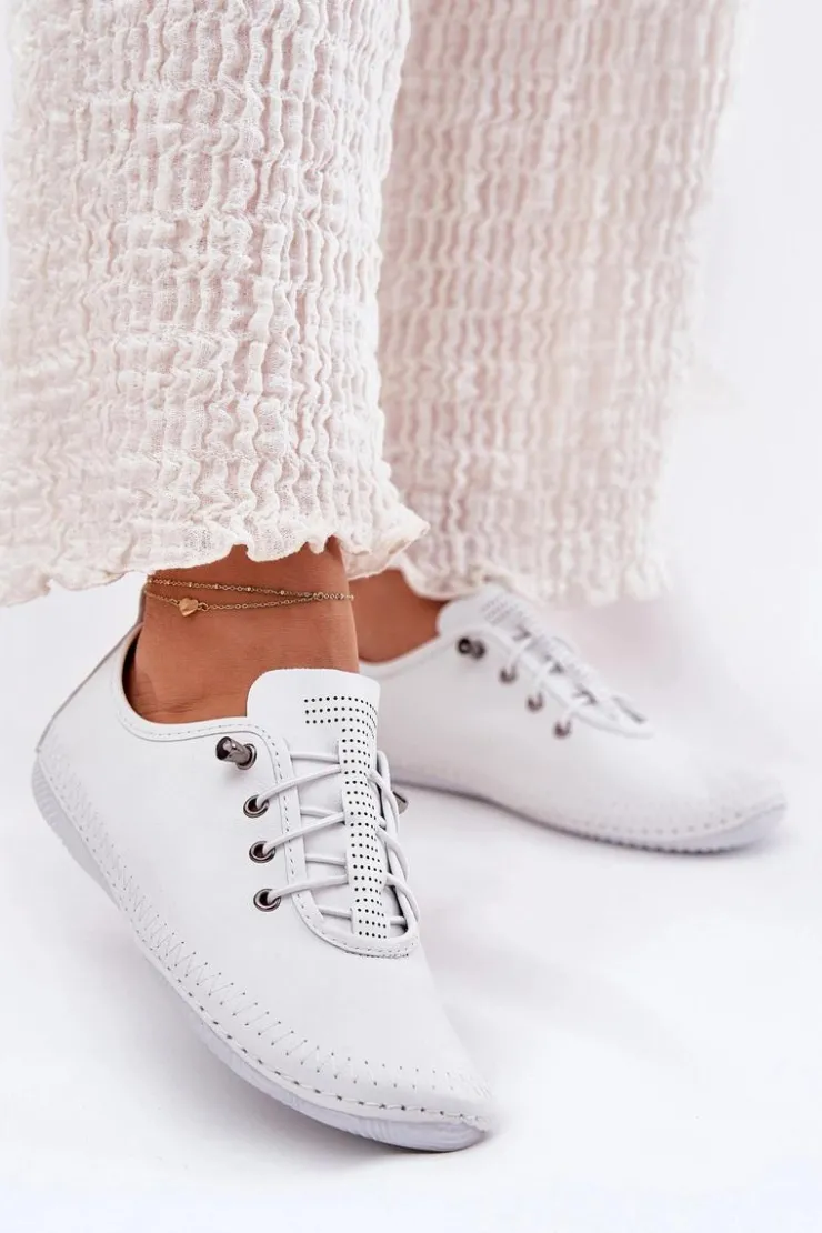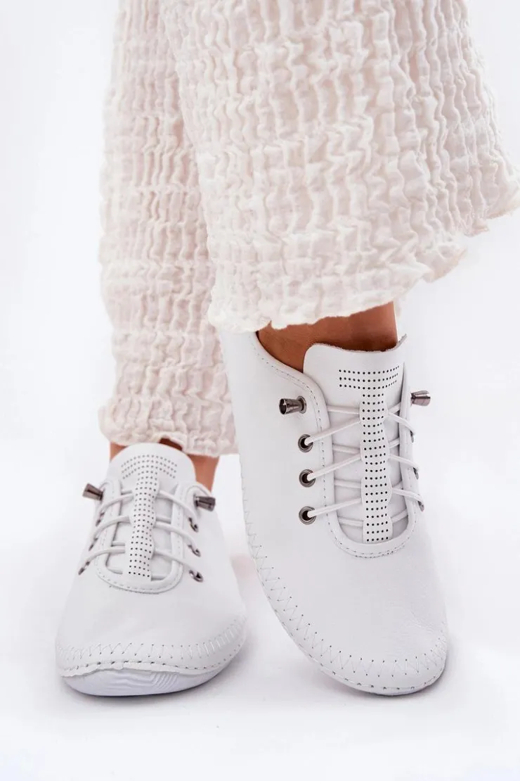 Skórzane półbuty damskie z elastyczną podeszwą, które łączą wygodę z eleganckim wyglądem. Zaokrąglone noski zapewniają komfort przez cały dzień, a gumki imitujące sznurówki ułatwiają zakładanie. Miękka wkładka gwarantuje dodatkowy komfort, sprawiając, że te półbuty są idealne na co dzień. Wygodne i stylowe, doskonale pasują do różnych stylizacji. Przy wyborze rozmiaru prosimy sugerować się tabelą rozmiarów.