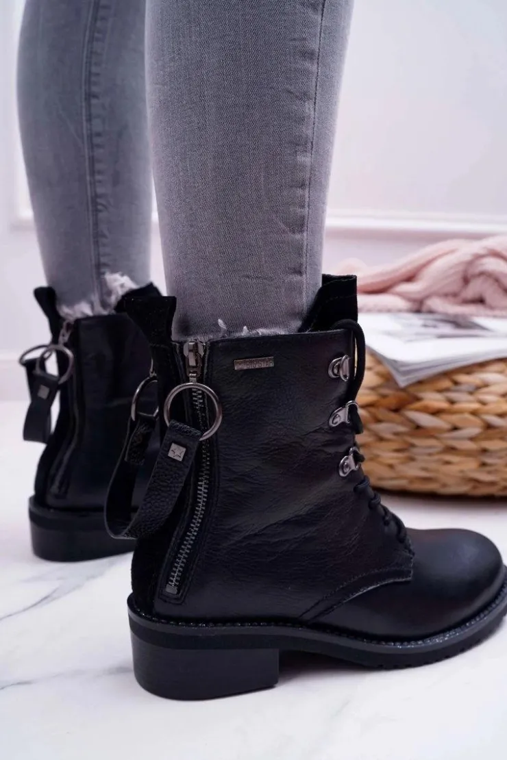 Best Big Star Shoes Damskie Botki Workery Big Star Skórzane Czarne EE274506
