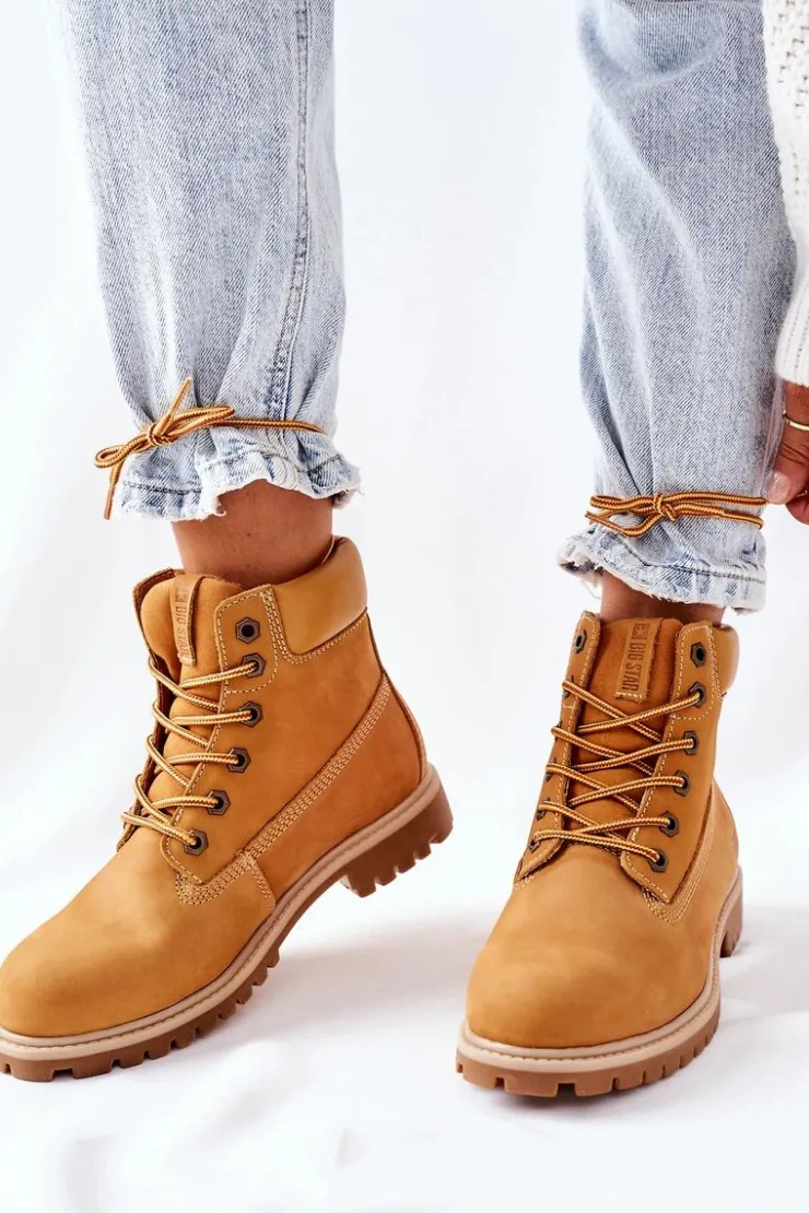 Best Big Star Shoes Damskie Skórzane Trapery Big Star II274447 Camel