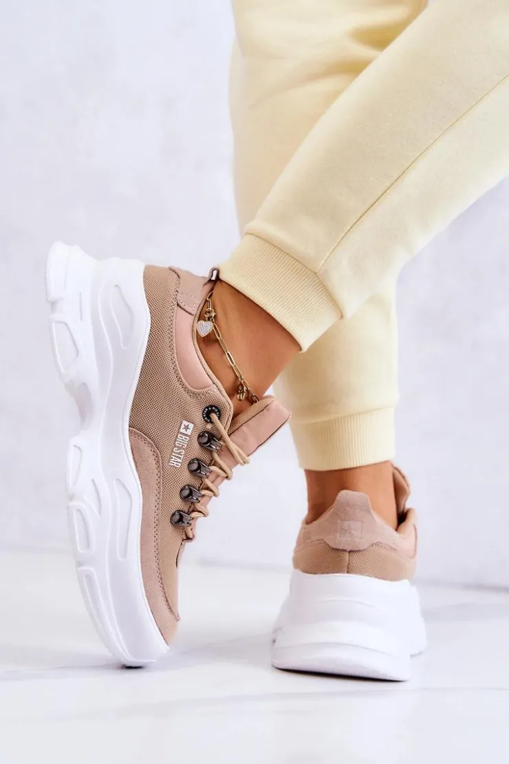 Wyjątkowe sportowe buty damskie od polskiej marki BIG STAR. Buty wykonane są z połączenia przewiewnego materiału tekstylnego oraz naturalnego zamszu. Sneakersy są niesamowicie lekkie i komfortowe w użytkowaniu. Buty posiadają masywną platformę, która świetnie sprawdzi się na nierównym podłożu. Została wykonana z tworzywa sztucznego. Buty posiadają klasyczne wiązanie. Miękka, materiałowa wkładka zapewni wygodę na każdym kroku. Przy wyborze rozmiaru prosimy sugerować się tabelą rozmiarów.