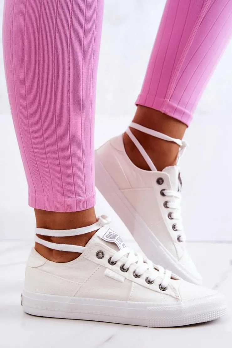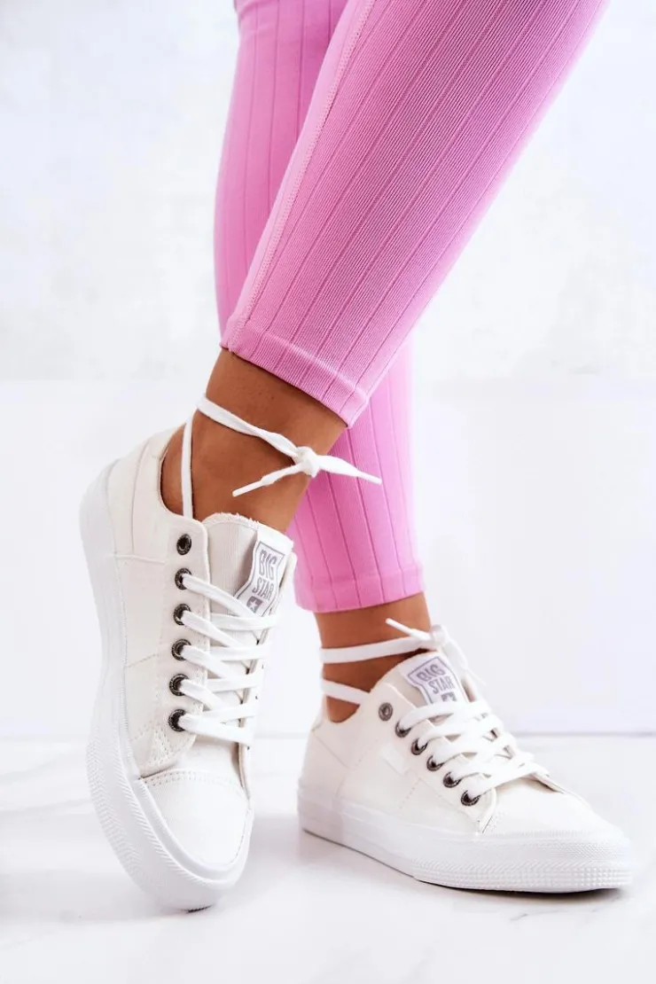 Tenisówki polskiej marki BIG STAR wykonane zostały z tkaniny. Posiadają miękką, materiałową wkładkę oraz antypoślizgową podeszwę. Klasyczny, wiązany model. Wygodne, a zarazem modne. Takie właśnie są te tenisówki! Masywna platforma świetnie izoluje od podłoża. Powinnaś mieć je w swojej szafie! Przy wyborze rozmiaru prosimy sugerować się tabelą rozmiarów.
