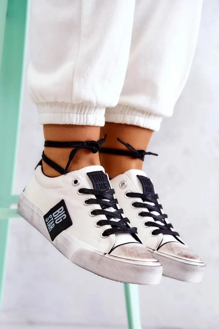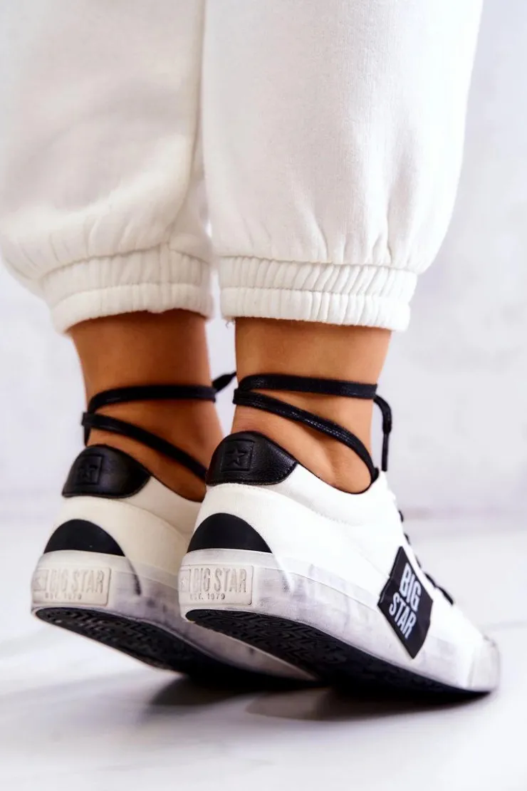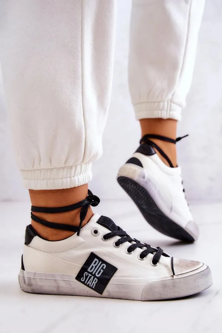 Klasyczny model został wykonany z tkaniny. Na nosku znajduje się gumowe wzmocnienie z modnymi przetarciami. Trampki posiadają wiązanie pozwalające na dopasowanie obuwia do tęgości stopy. Buty posiadają miękką, materiałową wkładkę oraz antypoślizgową podeszwę. Logo z boku sprawia, że będziesz w nich wyróżniać się spośród tłumu! Koniecznie sprawdź całą naszą kolekcję butów BIG STAR. Przy wyborze rozmiaru prosimy sugerować się tabelą rozmiarów.