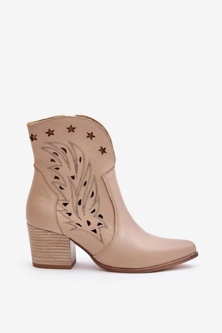 Best Boto Ażurowe Botki Kowbojki Skórzane Na Słupku Lewski 3613 Beżowe