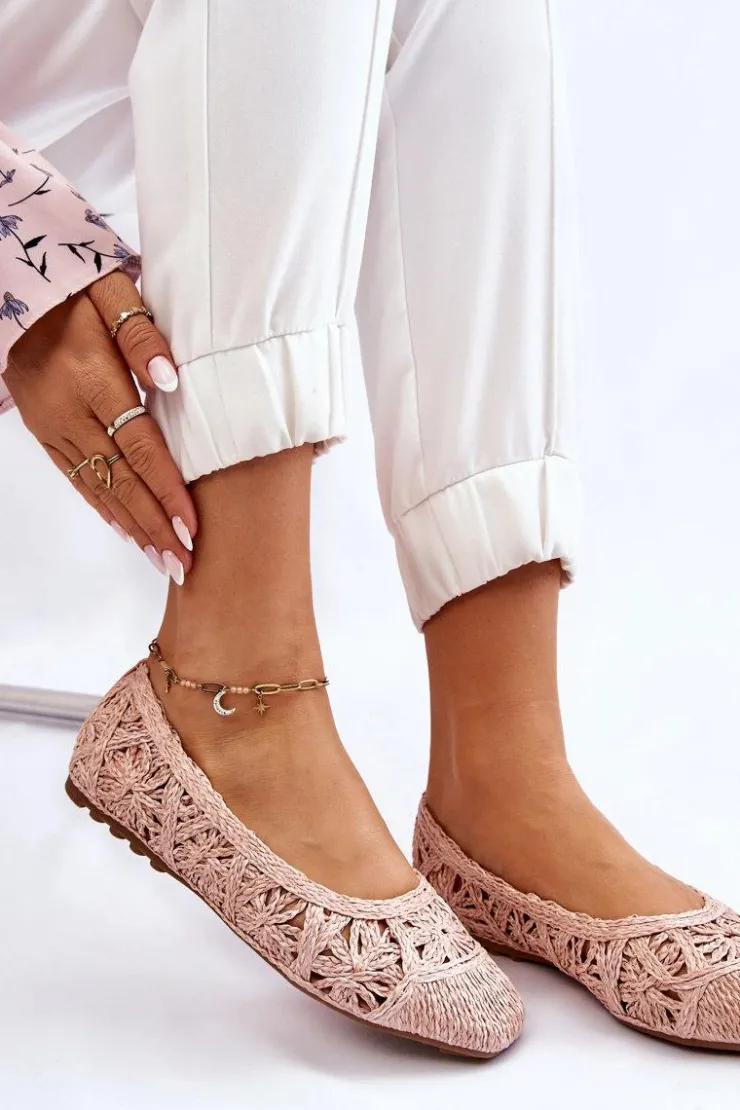Modne balerinki wykonane z tworzywa sztucznego w ażurowy wzór. Świetnie sprawdzą się na wiele okazji. Posiadają miękką, eko skórzaną wkładkę, która zapewni komfort podczas użytkowania. Model klasyczny, wsuwany. Ten fason obuwia powinien znaleźć się w garderobie każdej kobiety! Niezwykle przewiewne, idealne na cieplejsze dni. Niski obcas oraz antypoślizgowa podeszwa zapewni stabilność. Przy wyborze rozmiaru prosimy sugerować się tabelą rozmiarów.