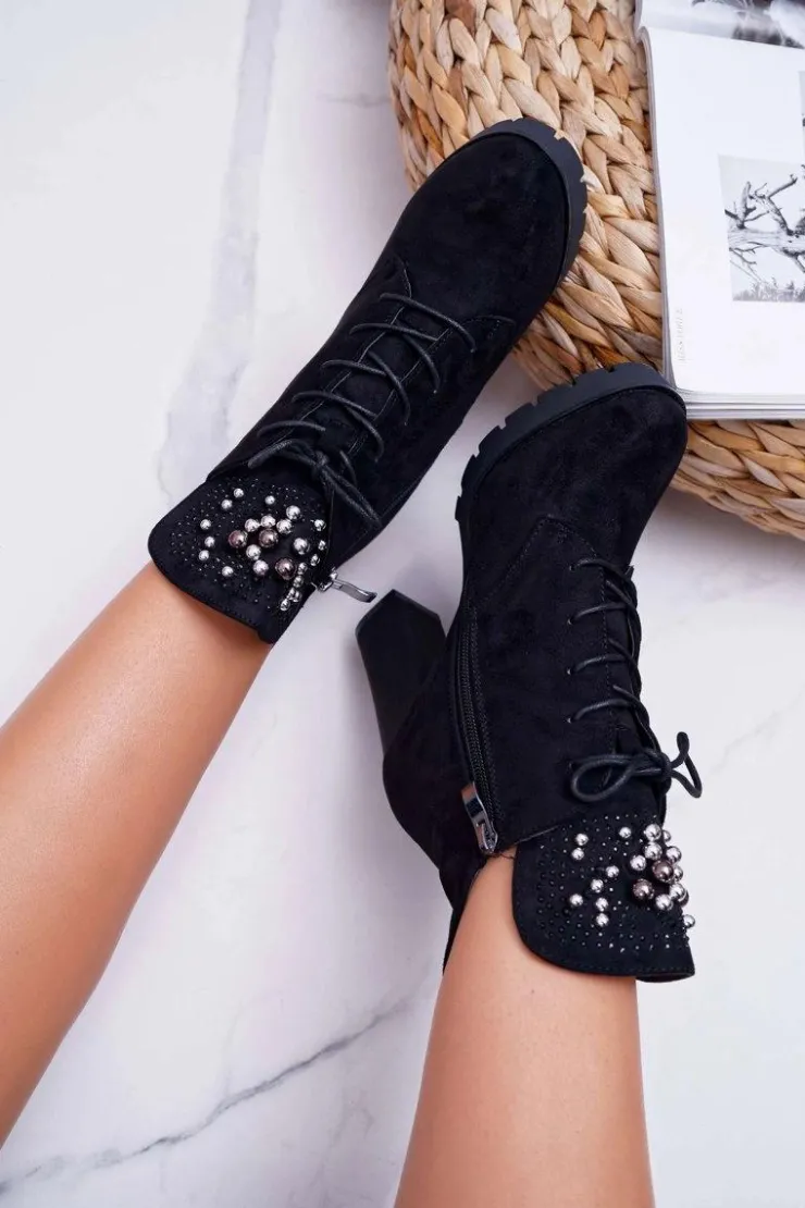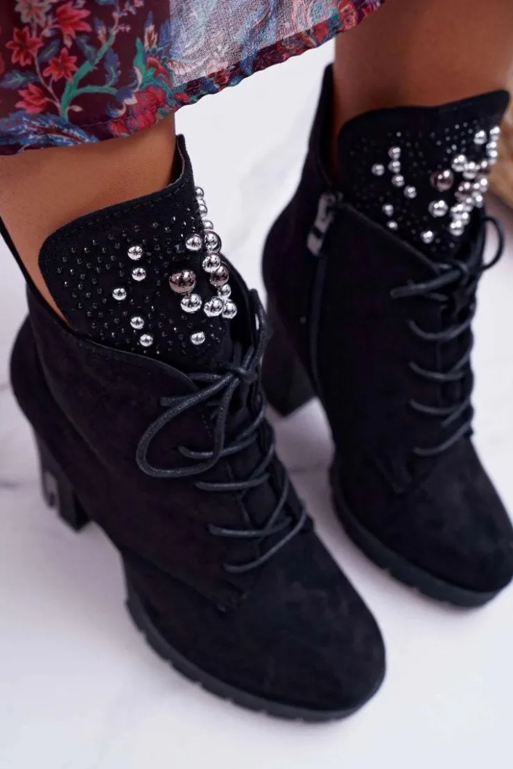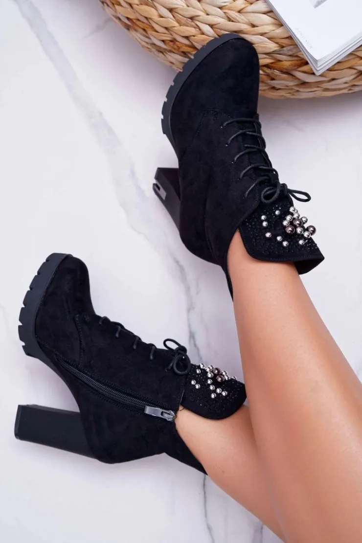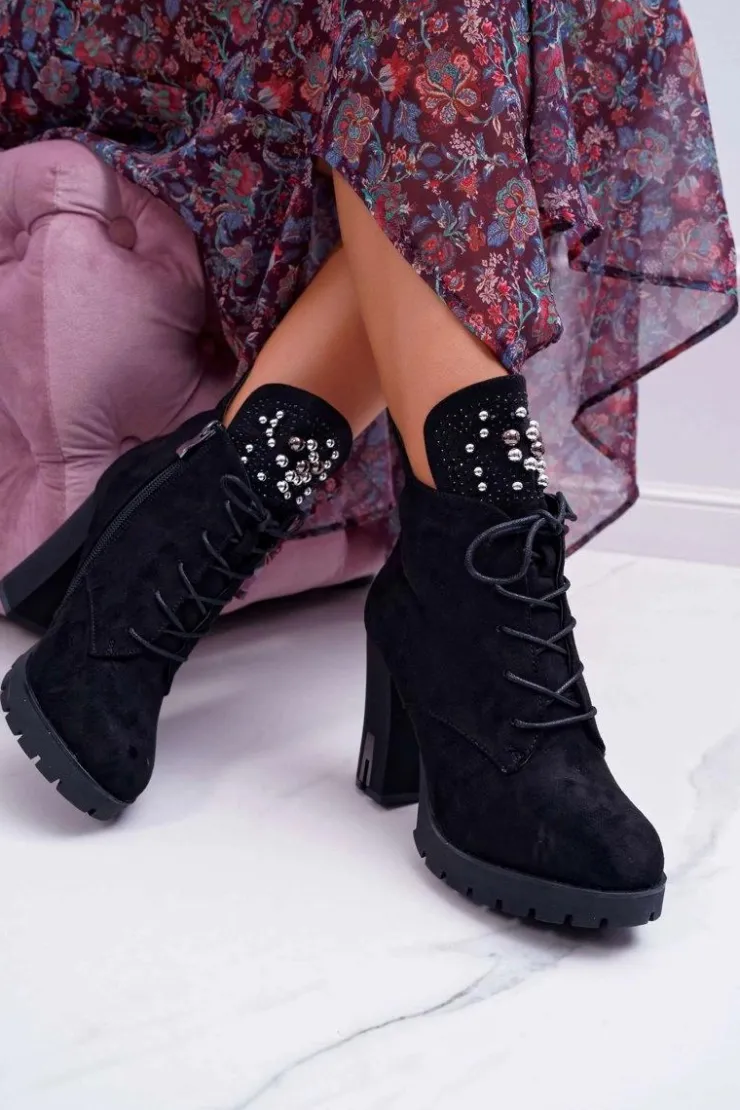 Best Boto Botki Damskie na Słupku Platformie Zamszowe Czarne Fieste