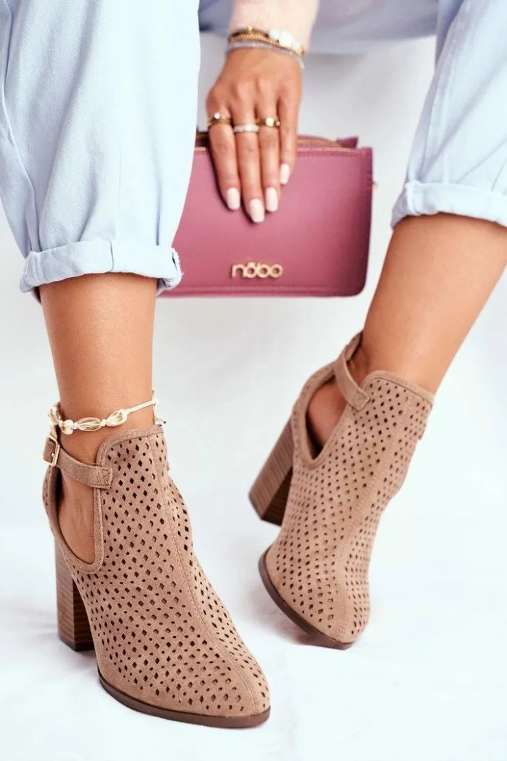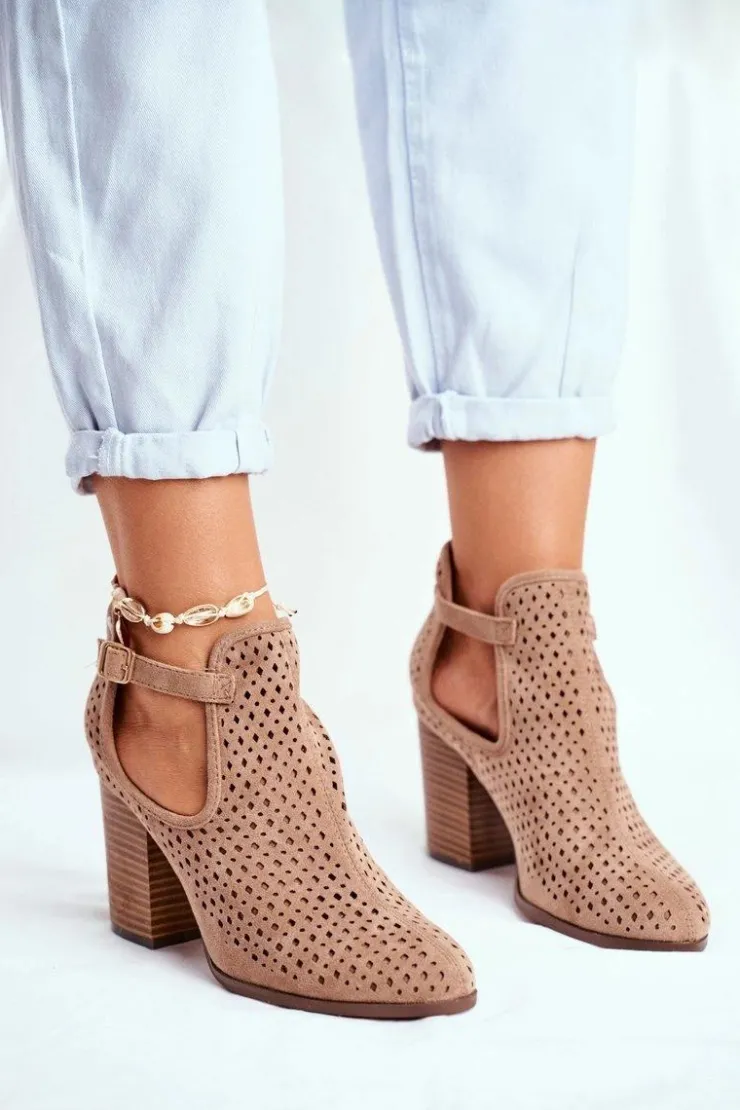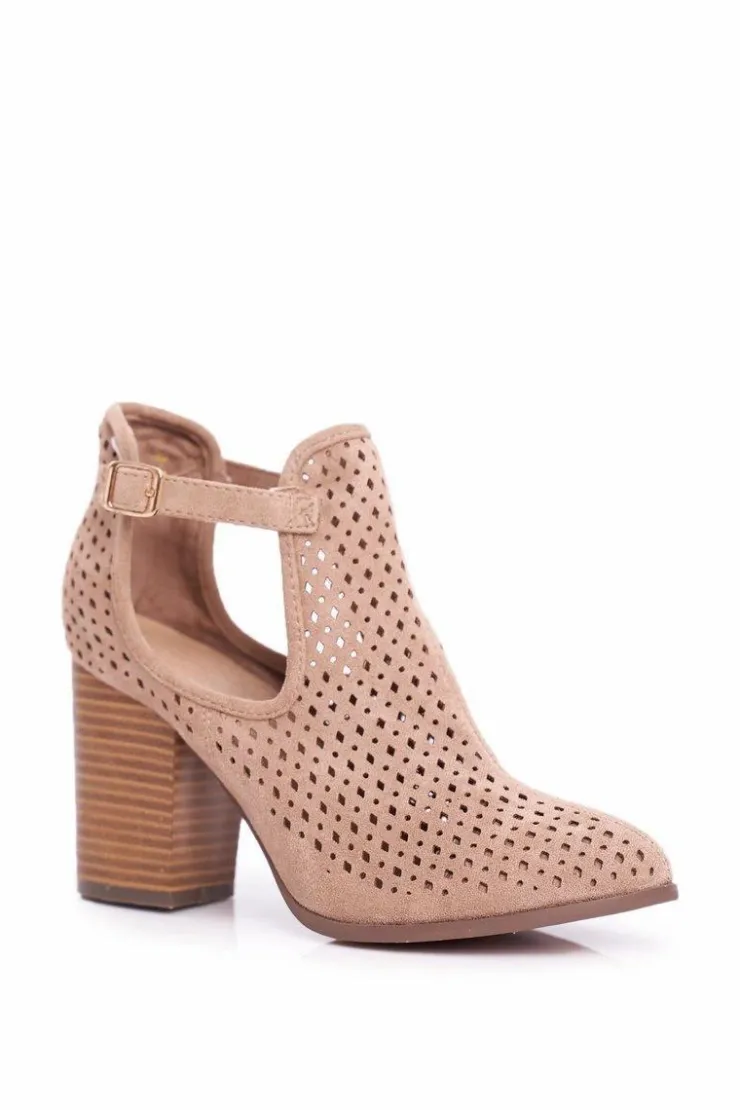 Best Boto Botki Damskie Na Słupku Zamszowe Ażurowe Beżowe Morrena