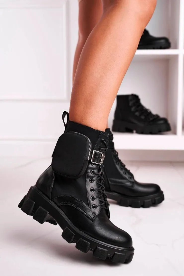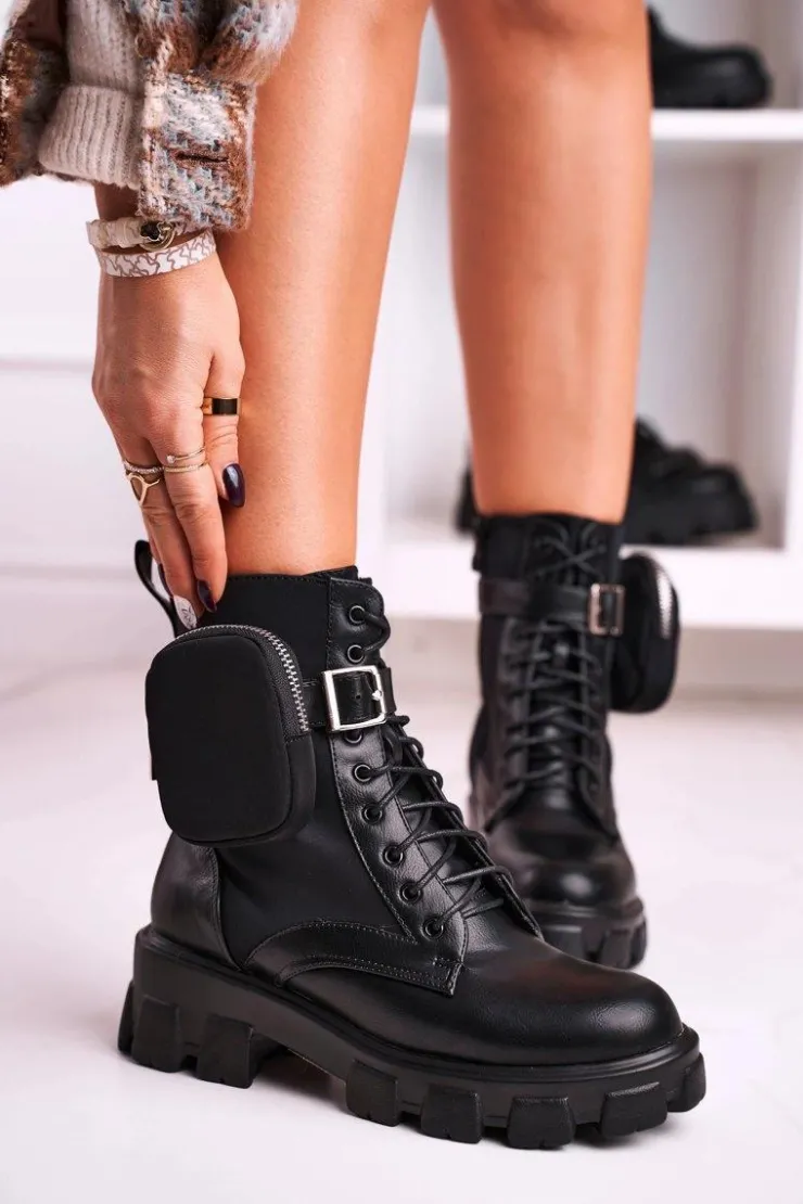 Botki wykonane są ze skóry ekologicznej oraz odpornego na zabrudzenia materiału. Workery świetnie wpiszą się w stylizacje glam rock lub grunge. Przy wyborze rozmiaru prosimy sugerować się tabelą rozmiarów. Pasek oraz torebka są odpinane.