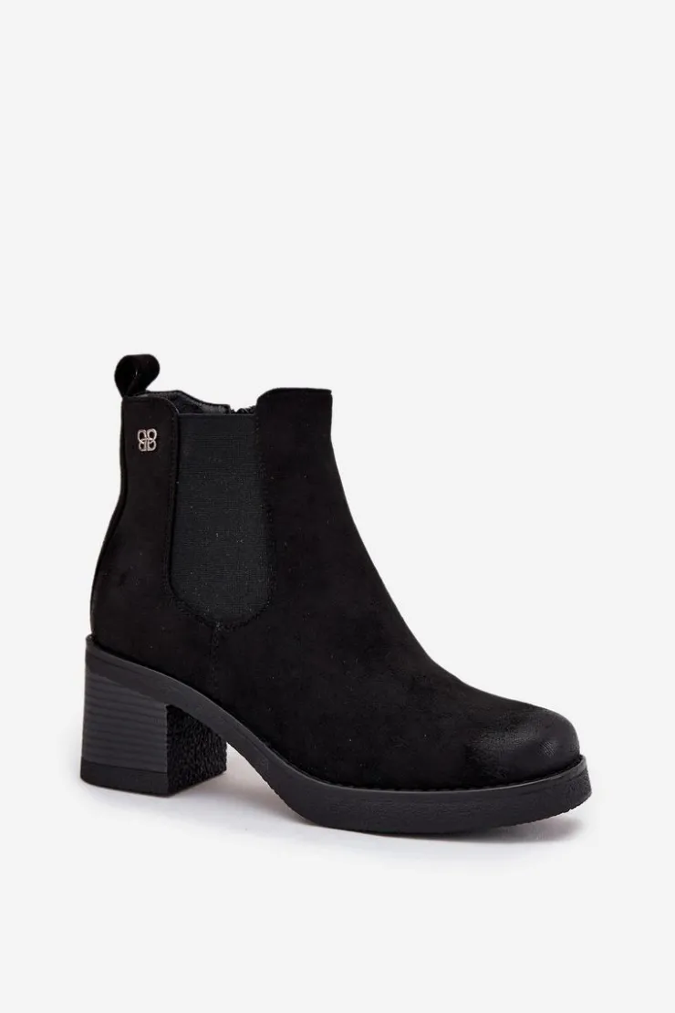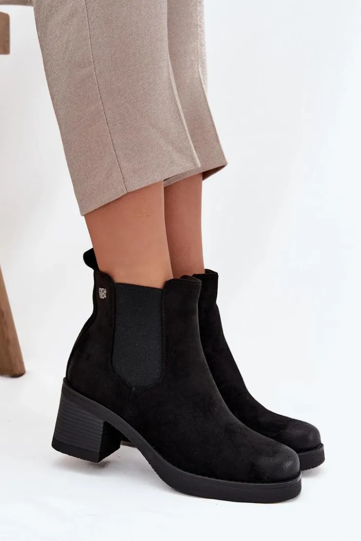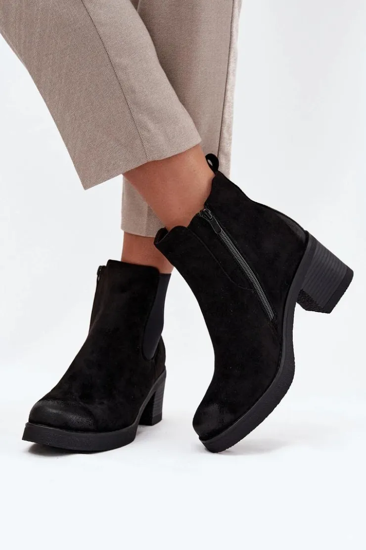 Botki damskie wykonane z eko zamszu. Osadzone na obcasie w formie słupka, który zapewnia stabilność i komfort przez cały dzień. Ocieplane, gwarantują ciepło w chłodniejsze dni, a zamek błyskawiczny ułatwia zakładanie. Z boku cholewki znajduje się subtelny, złoty detal, który dodaje im eleganckiego akcentu. Idealne do codziennych stylizacji, które wymagają zarówno wygody, jak i modnego wyglądu. Przy wyborze rozmiaru prosimy sugerować się tabelą rozmiarów.