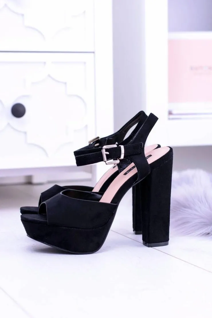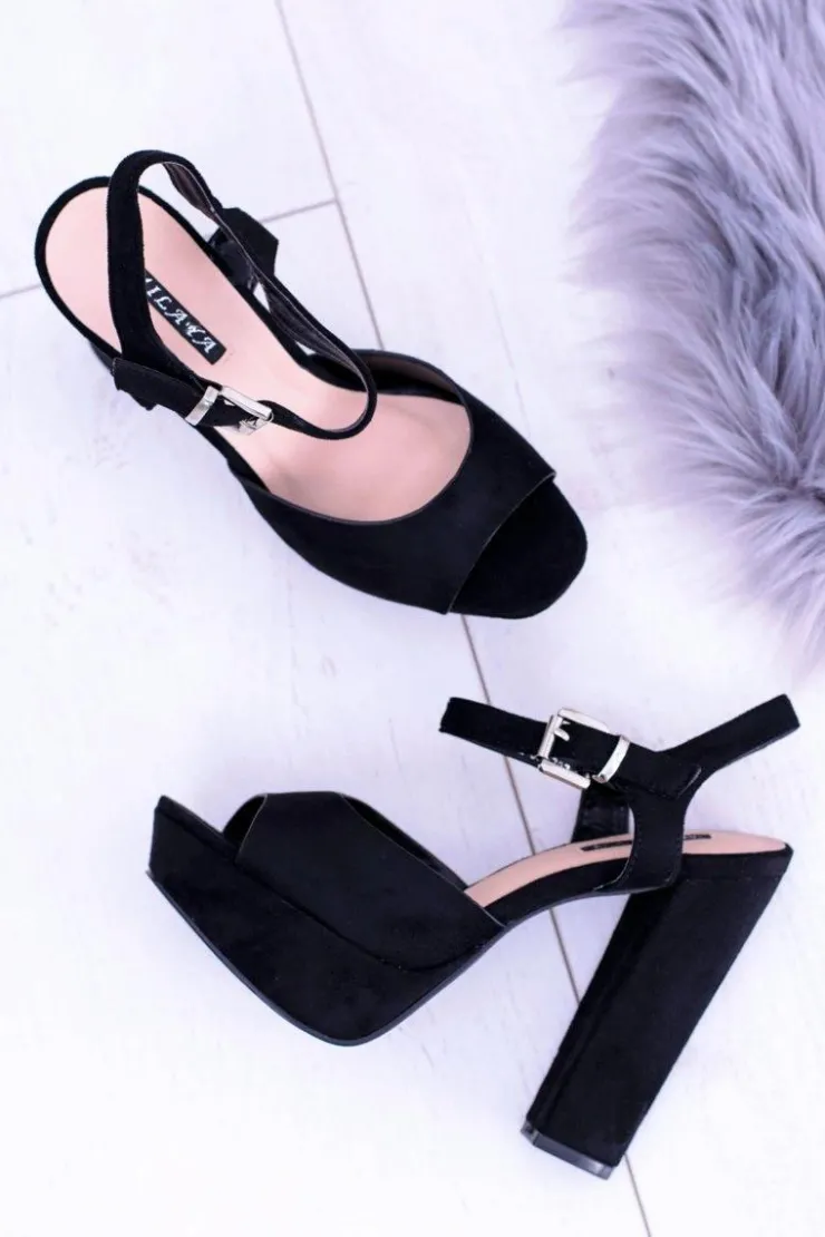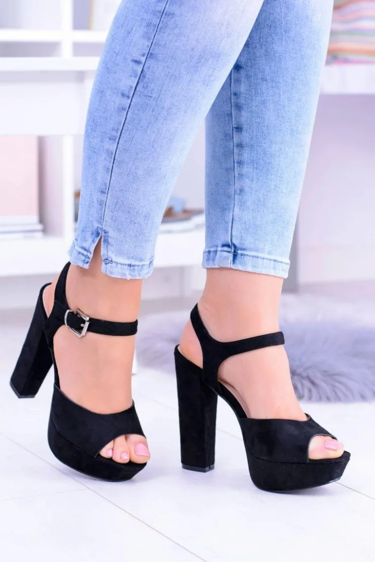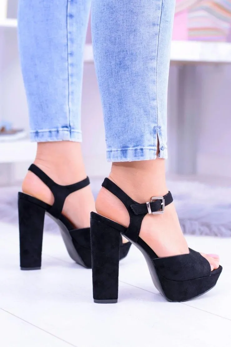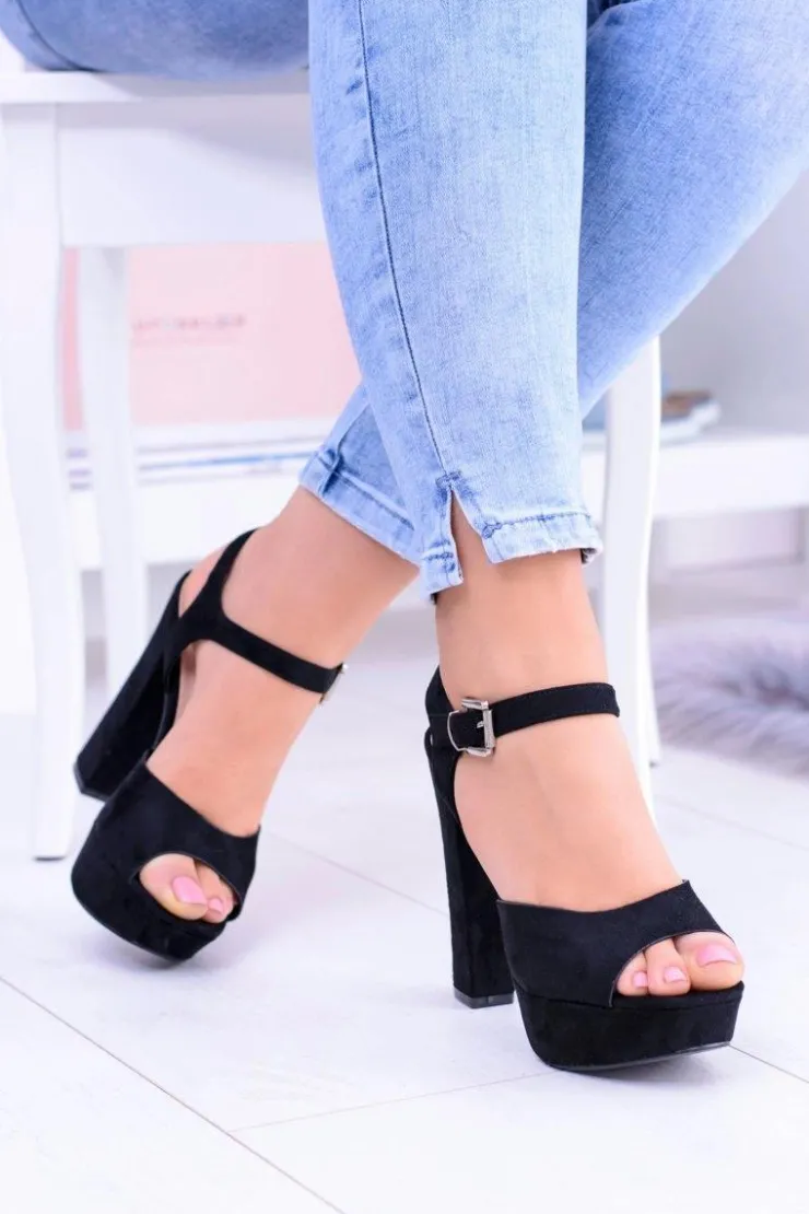 Best Boto Czarne Wysokie Zamszowe Sandałki na Słupku Gertigo