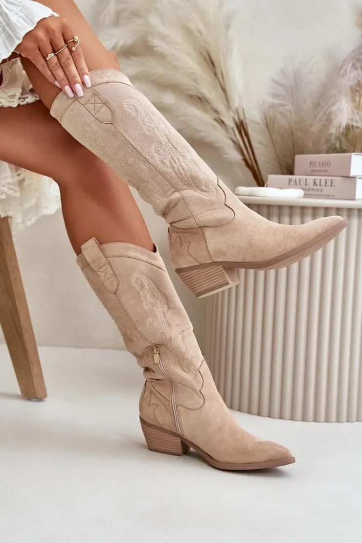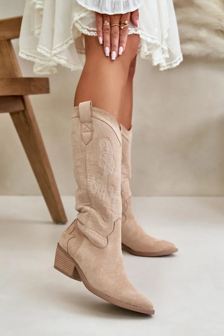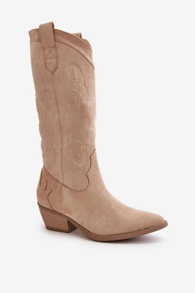 Damskie kozaki z eko zamszu to stylowa propozycja dla każdej kobiety. Osadzone na niskim obcasie i zakończone noskami w szpic, dodają elegancji każdej stylizacji. Model wsuwany z dodatkowym zapięciem na zamek. Kozaki kowbojki świetnie uzupełnią różnorodne zestawy modowe. Nie może ich zabraknąć w Twojej garderobie! Przy wyborze rozmiaru prosimy sugerować się tabelą rozmiarów.