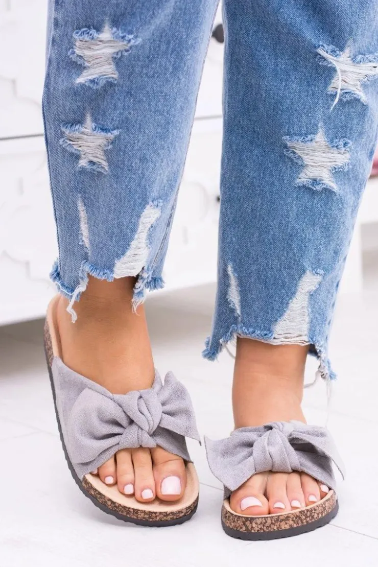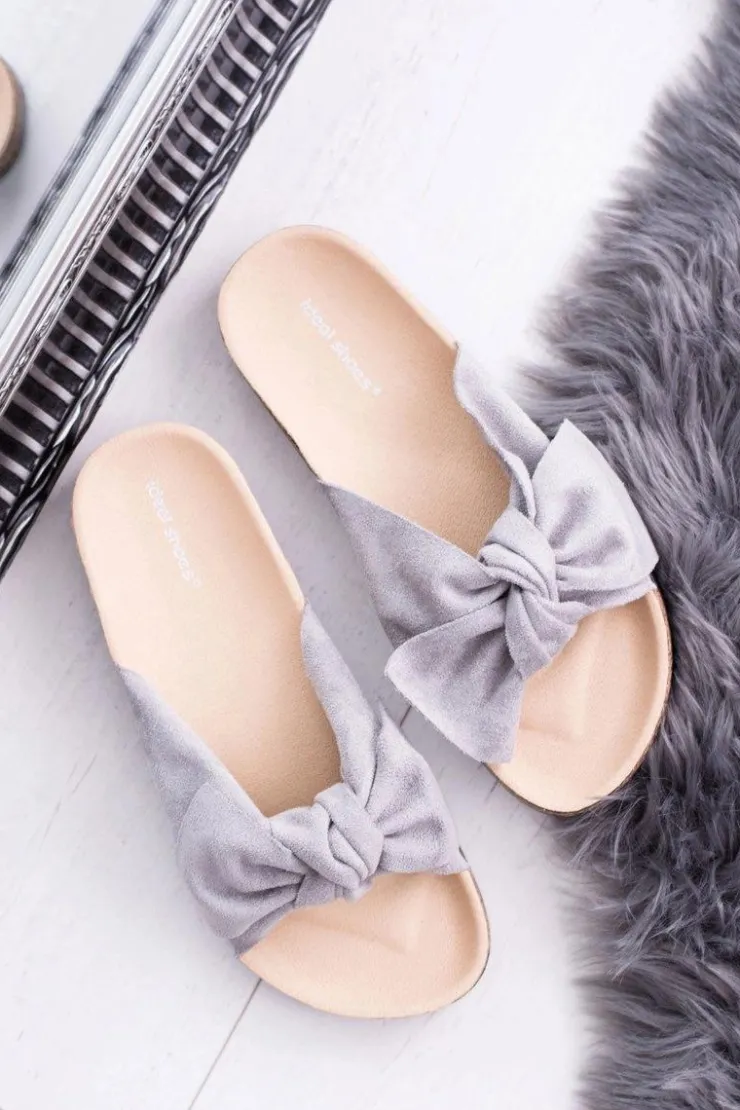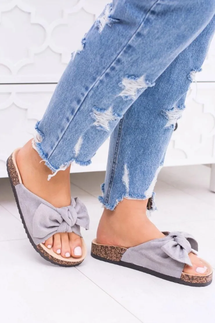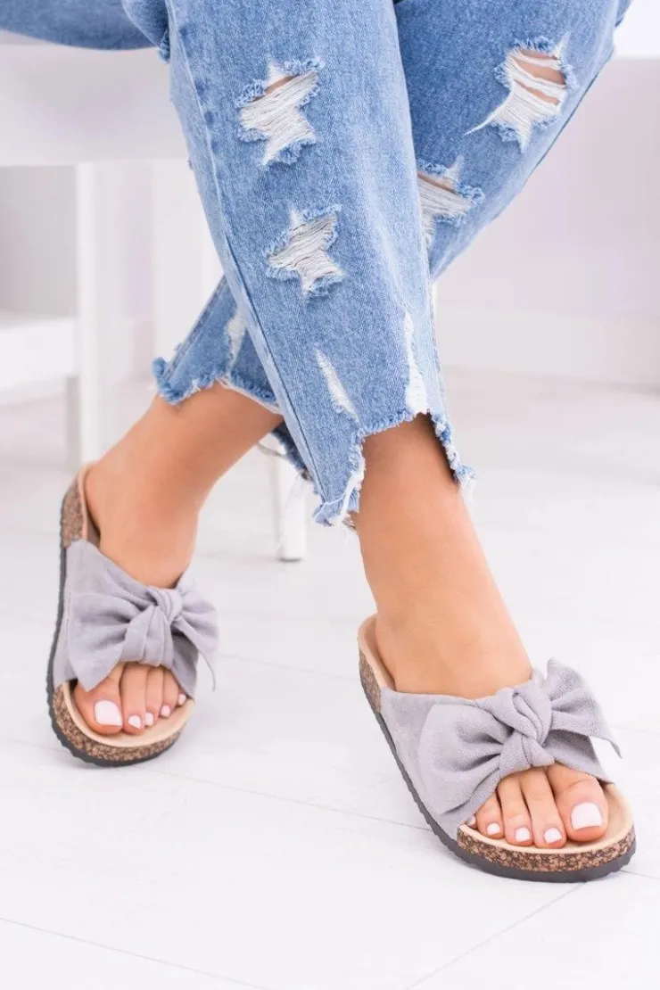 Best Boto Damskie Szare Klapki Na Korku Kokarda Dominica