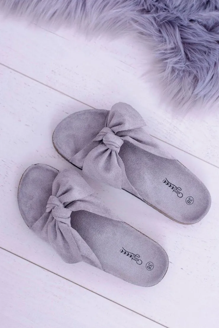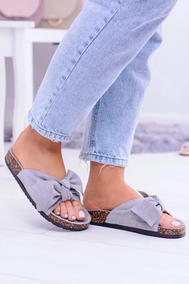 Best Boto Damskie Szare Klapki Na Korku Kokarda Wendy