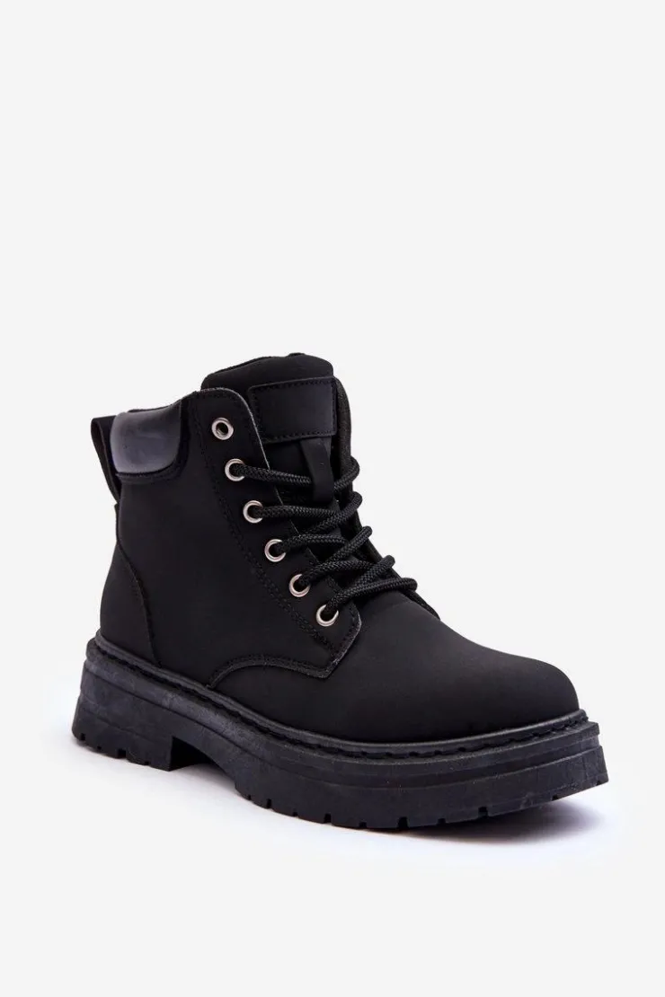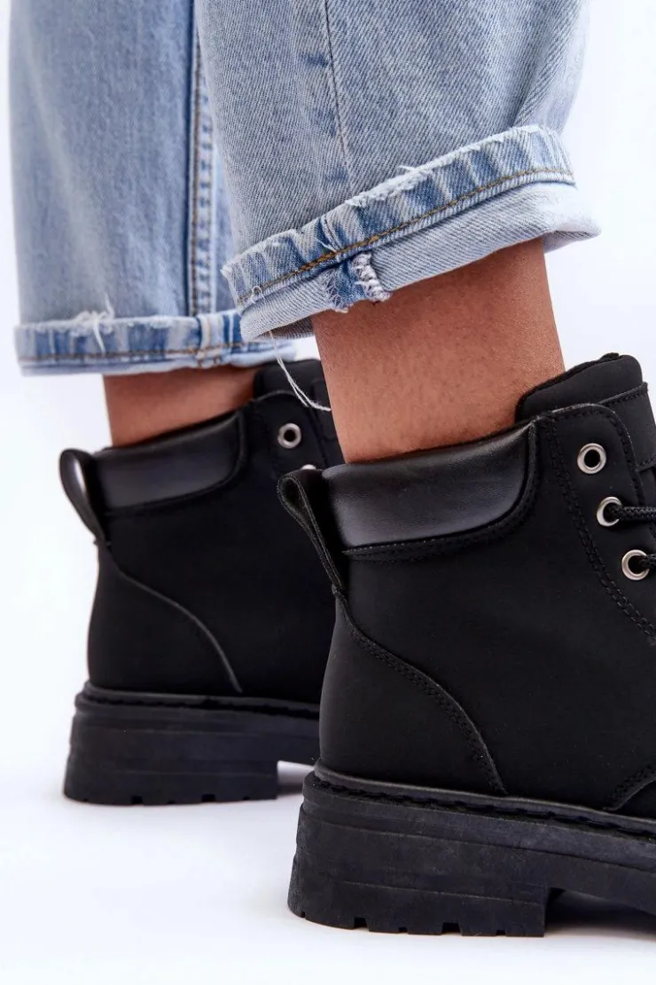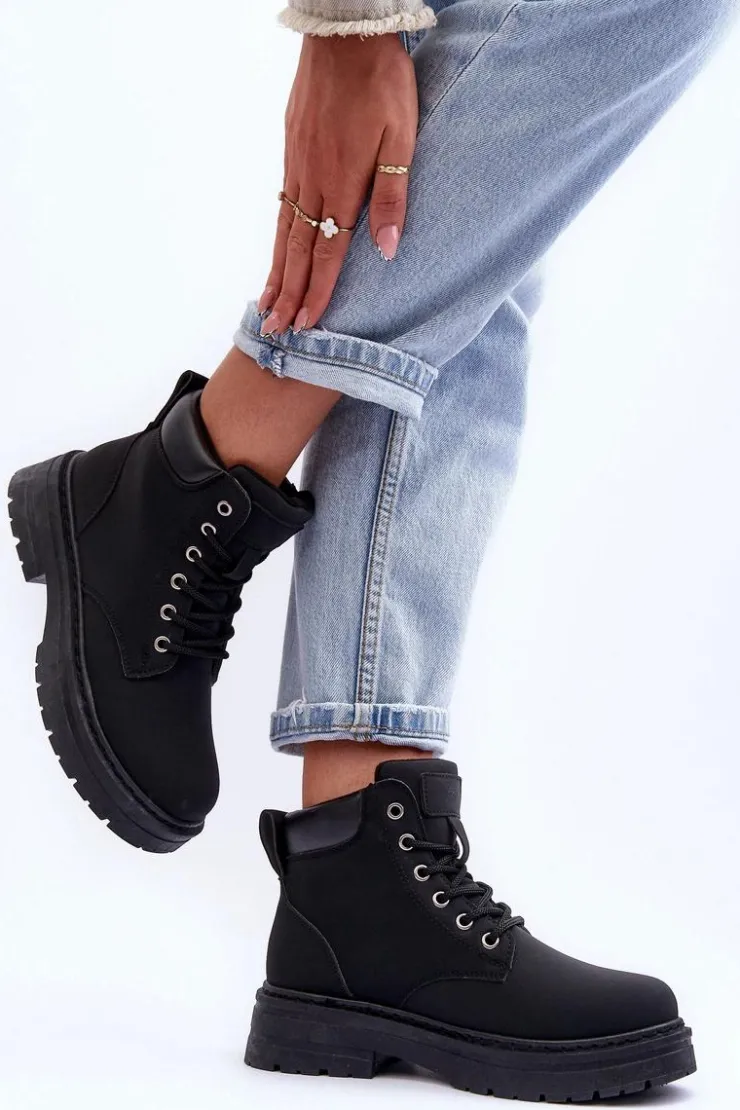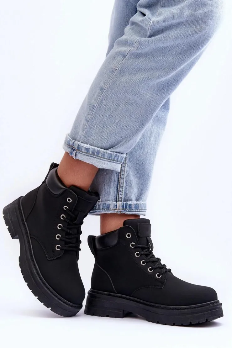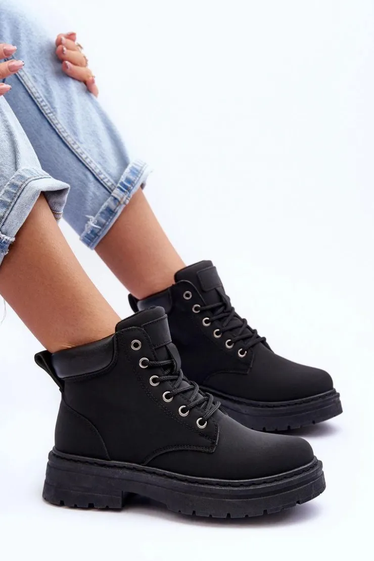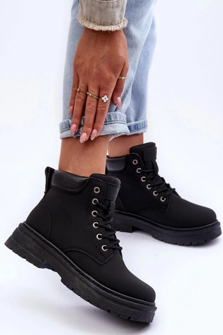 Buty zostały wykonane z miękkiej eko skóry. Osadzone na platformie i płaskim obcasie. Środek został ocieplony kocem obuwniczym. Trapery posiadają przeszycia na cholewce. Wiązanie sprawia, że można je dopasować do własnych potrzeb. Ten model traperów zachwyci każdego! Przy wyborze rozmiaru prosimy sugerować się tabelą rozmiarów.