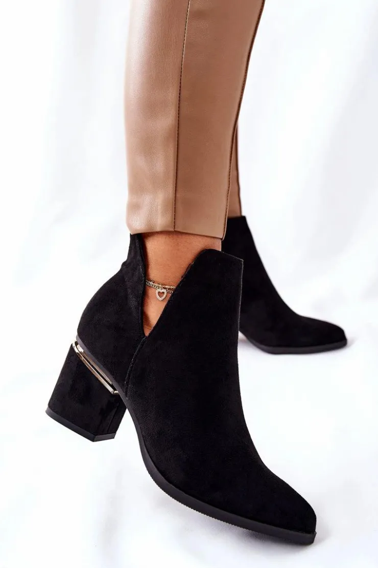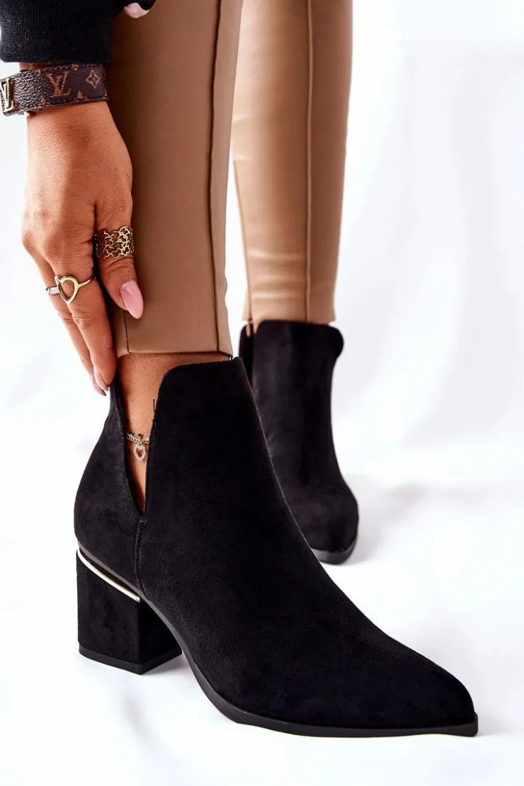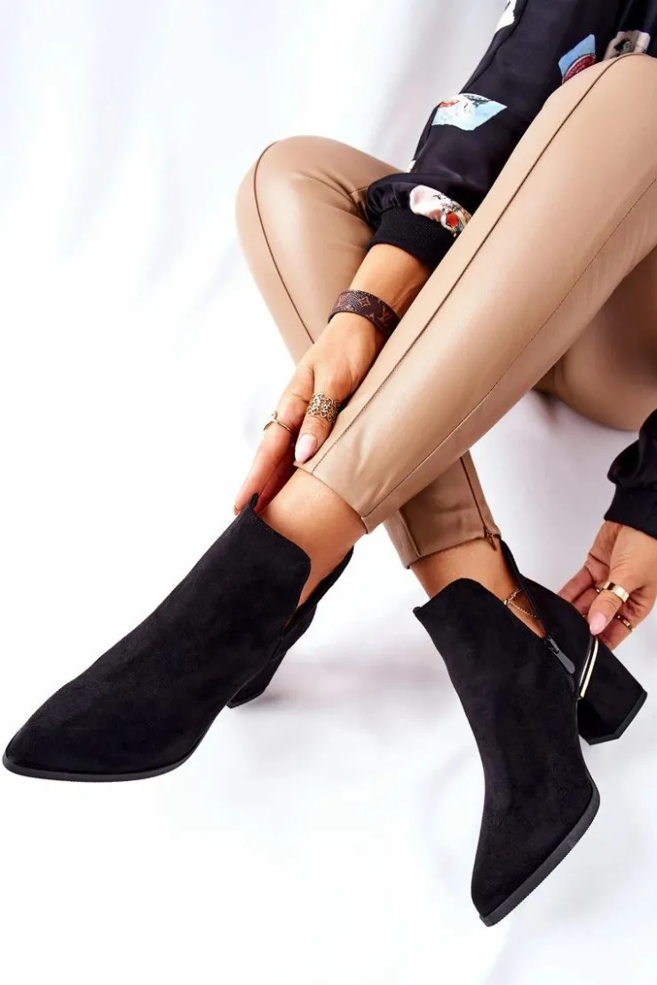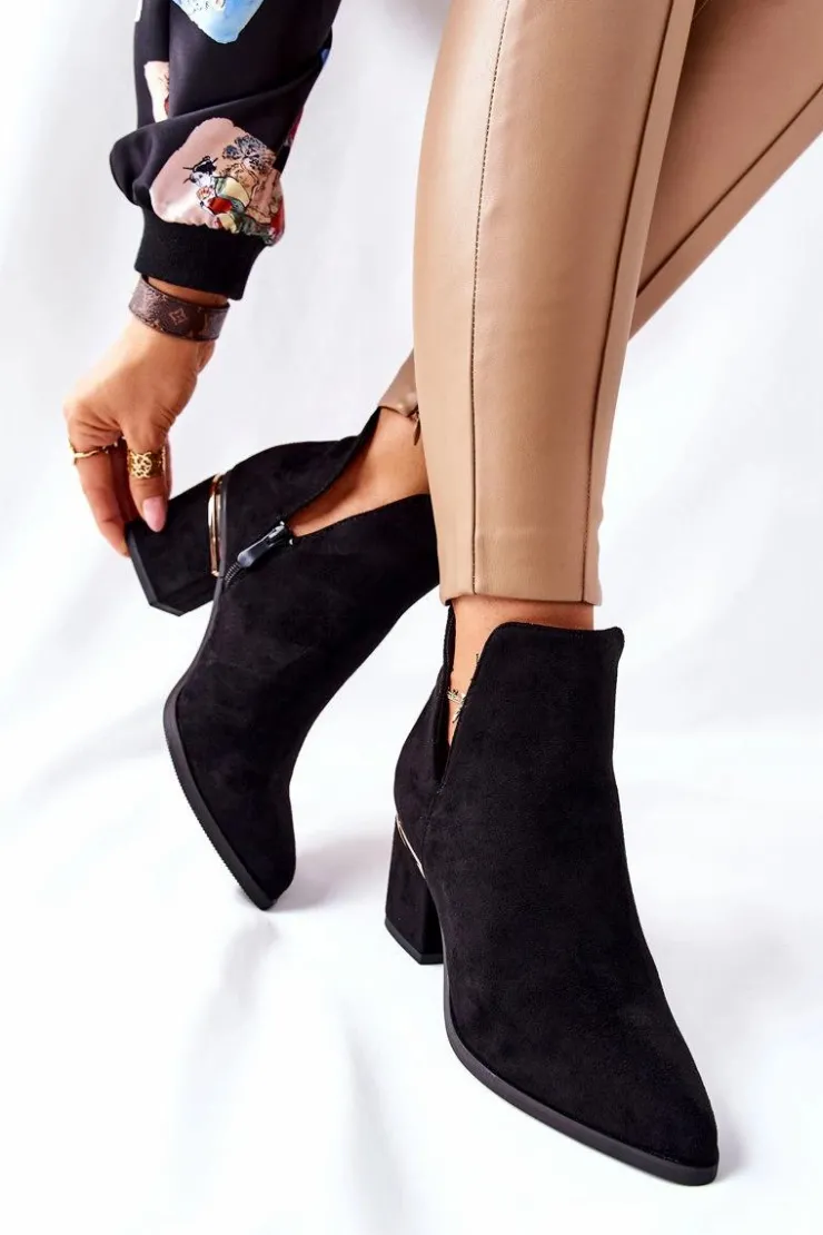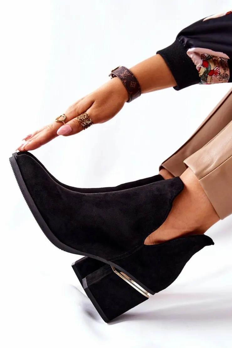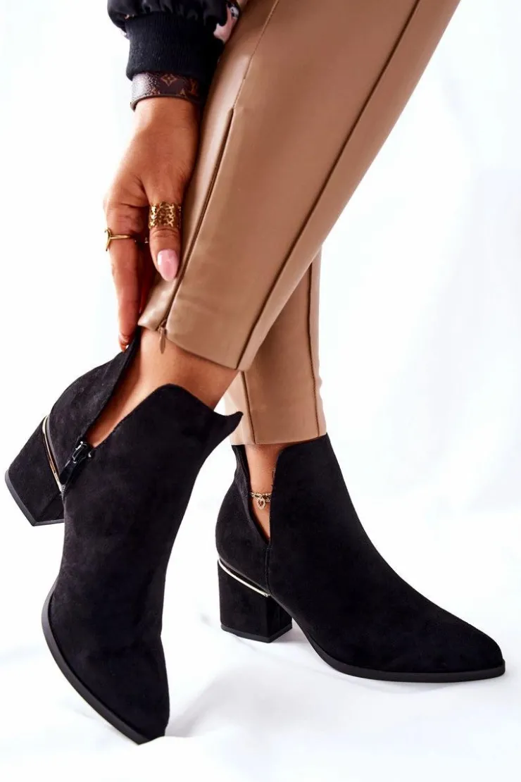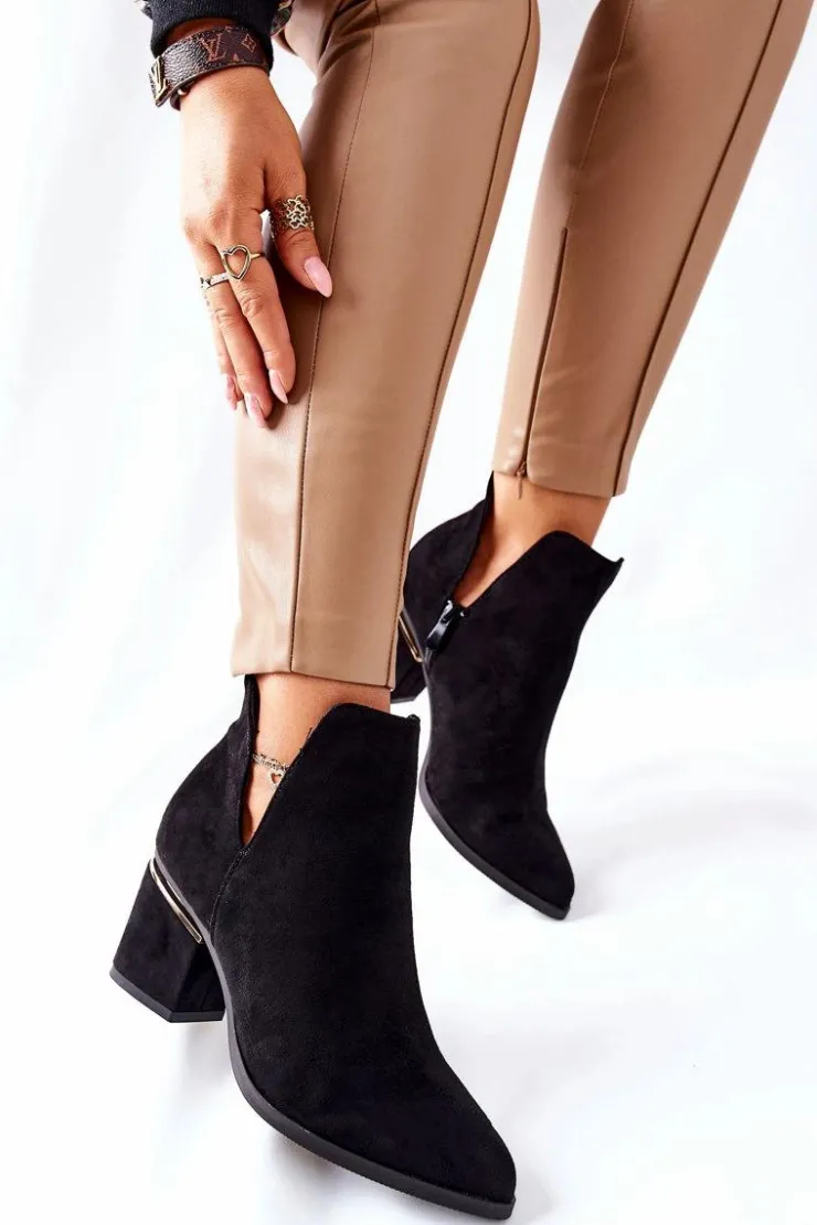 Best Boto Damskie Zamszowe Botki Z Wycięciami Czarne Noel