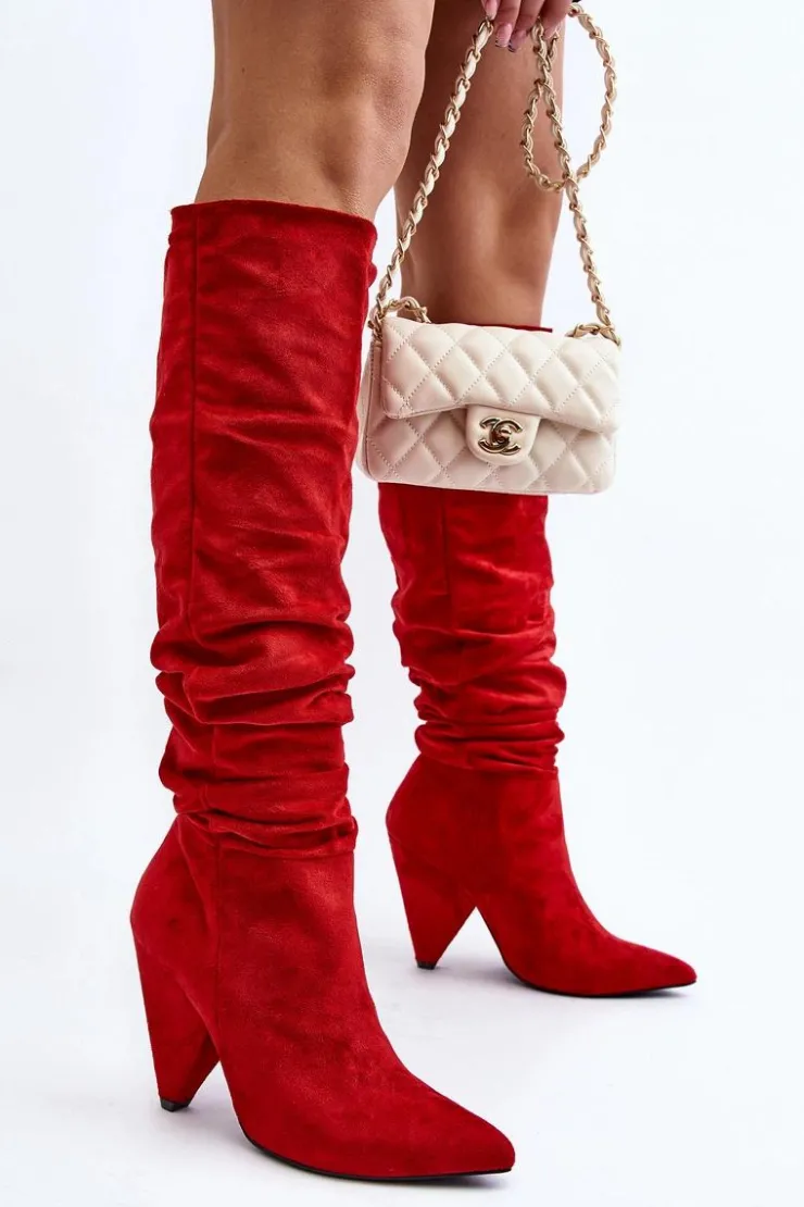 Piękne kozaki na obcasie. Cholewka z marszczeniem wykonana jest z miękkiego eko zamszu. Koniecznie sprawdź całą naszą kolekcję damskich kozaków! Przy wyborze rozmiaru prosimy sugerować się tabelą rozmiarów.