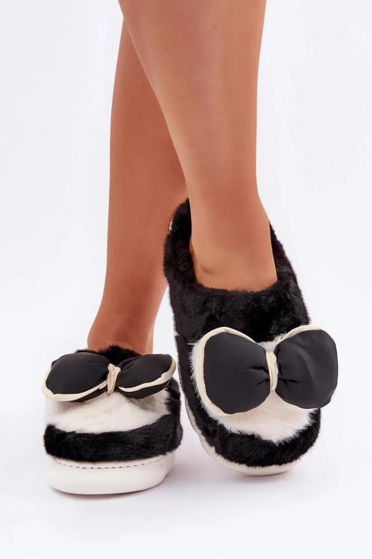 Kapcie damskie wykonane z miękkiego, przytulnego futerka, idealnie otulają stopy, zapewniając ciepło i komfort. Model osadzony na grubszej podeszwie, co dodaje stabilności i izoluje od chłodnego podłoża. Zakryte noski zapewniają dodatkową ochronę przed zimnem, czyniąc kapcie idealnym wyborem na chłodne dni. Przód ozdobiony kokardką, która nadaje wyjątkowego uroku. Stylowe i praktyczne! Przy wyborze rozmiaru prosimy sugerować się tabelą rozmiarów.