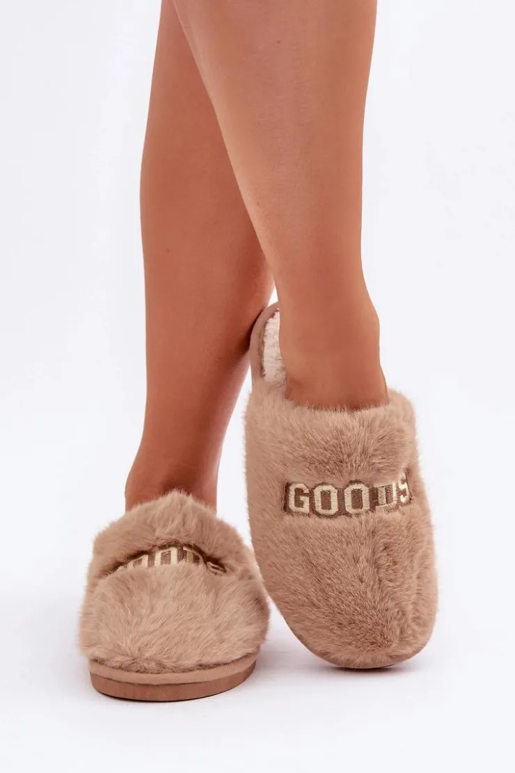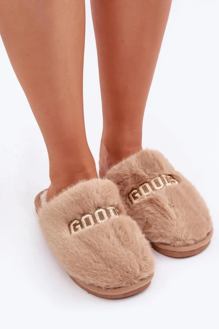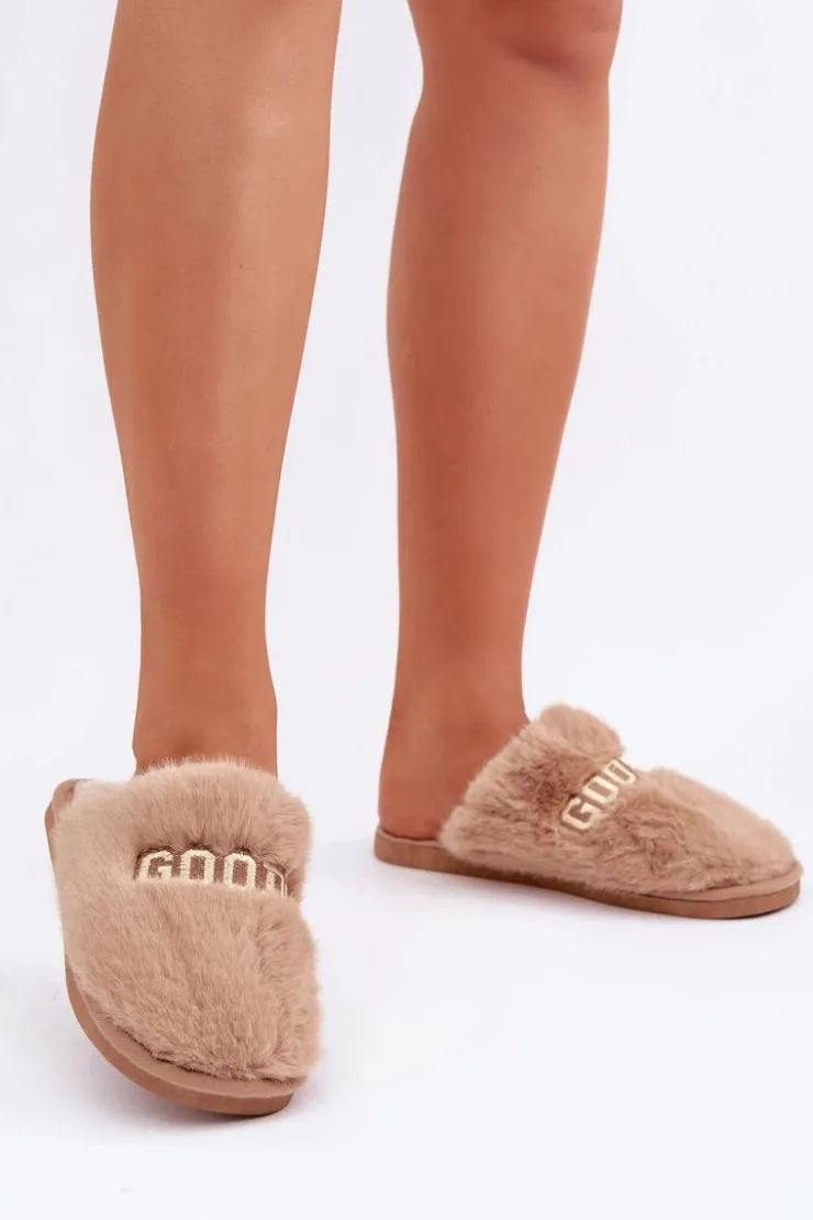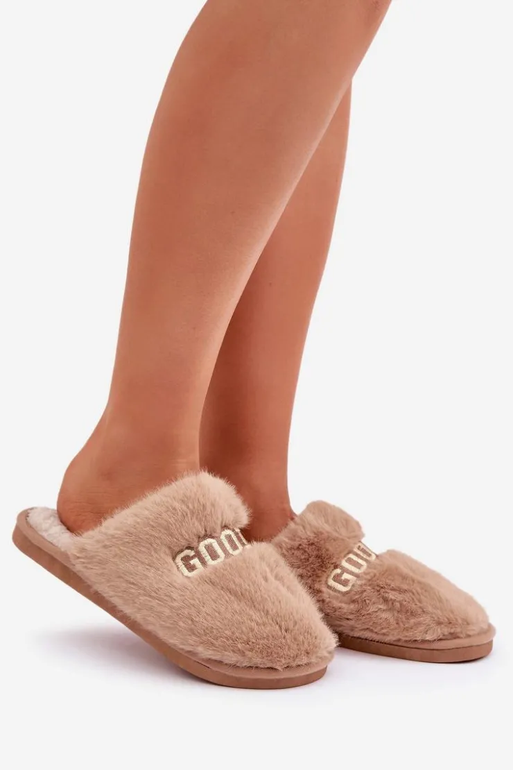 Kapcie damskie wykonane z miękkiego futerka, które zapewnia wyjątkowy komfort i ciepło. Model ozdobiony stylowym napisem, który dodaje nowoczesnego charakteru. Idealne na chłodne dni, doskonale sprawdzą się jako wygodne obuwie domowe, łącząc funkcjonalność z modnym wyglądem. Przy wyborze rozmiaru prosimy kierować tabelą rozmiarów.