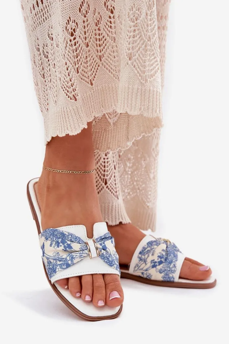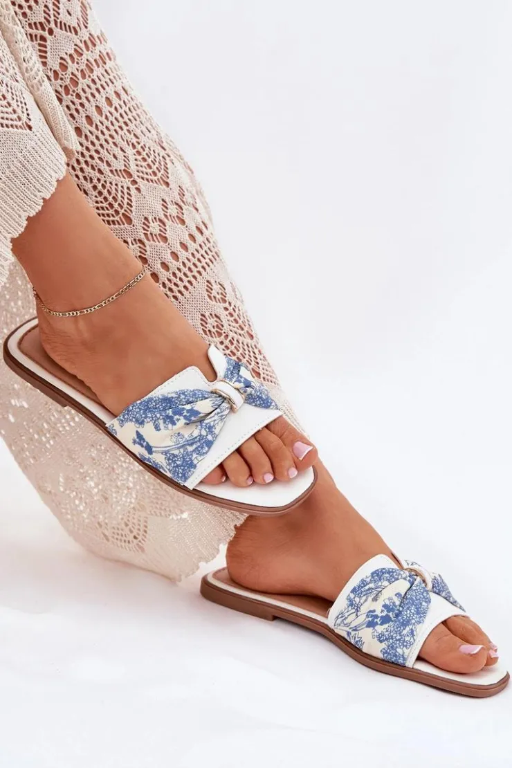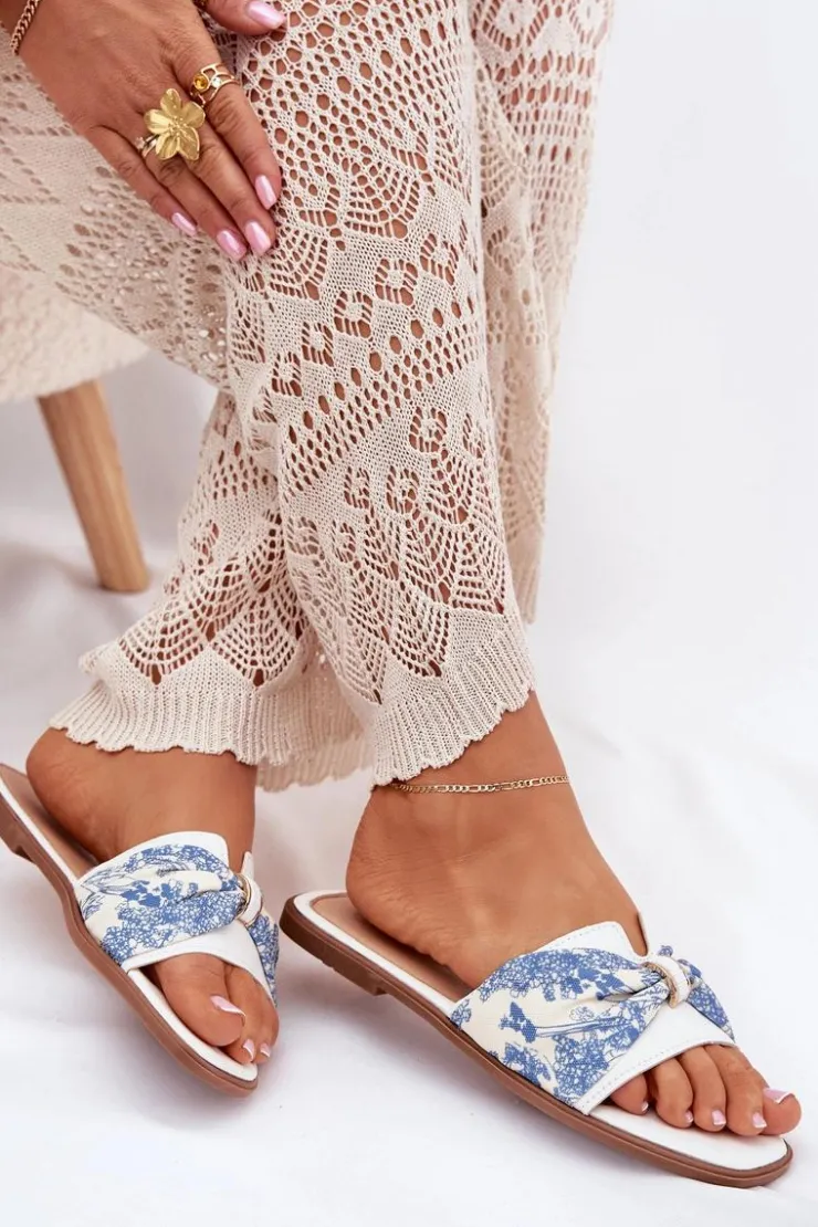 Klasyczne klapki damskie na płaskim obcasie, ozdobione uroczą kokardką z przodu, która dodaje im subtelnego uroku. Idealne do letnich sukienek, spódnic i szortów, doskonale uzupełnią każdą codzienną stylizację, zapewniając komfort i lekkość przez cały dzień. Przy wyborze rozmiaru prosimy sugerować się tabelą rozmiarów.