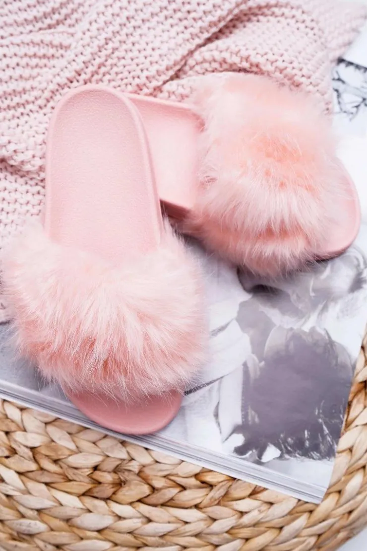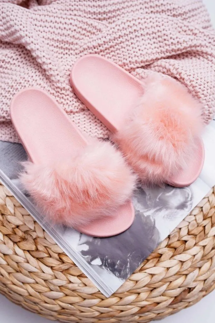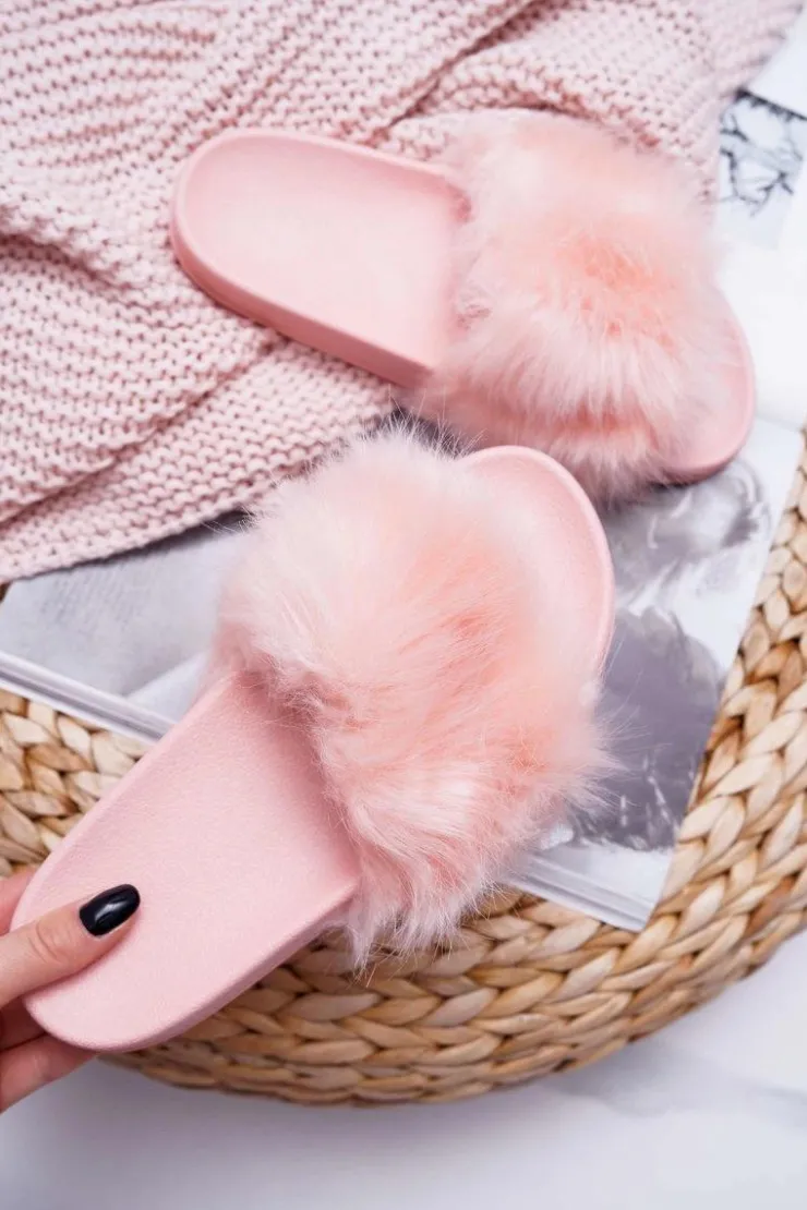Best Boto Klapki Damskie Z Futerkiem Jasny Róż Fur