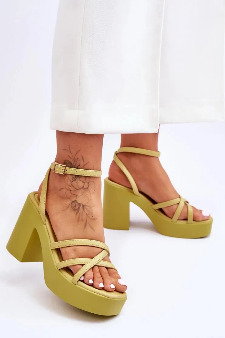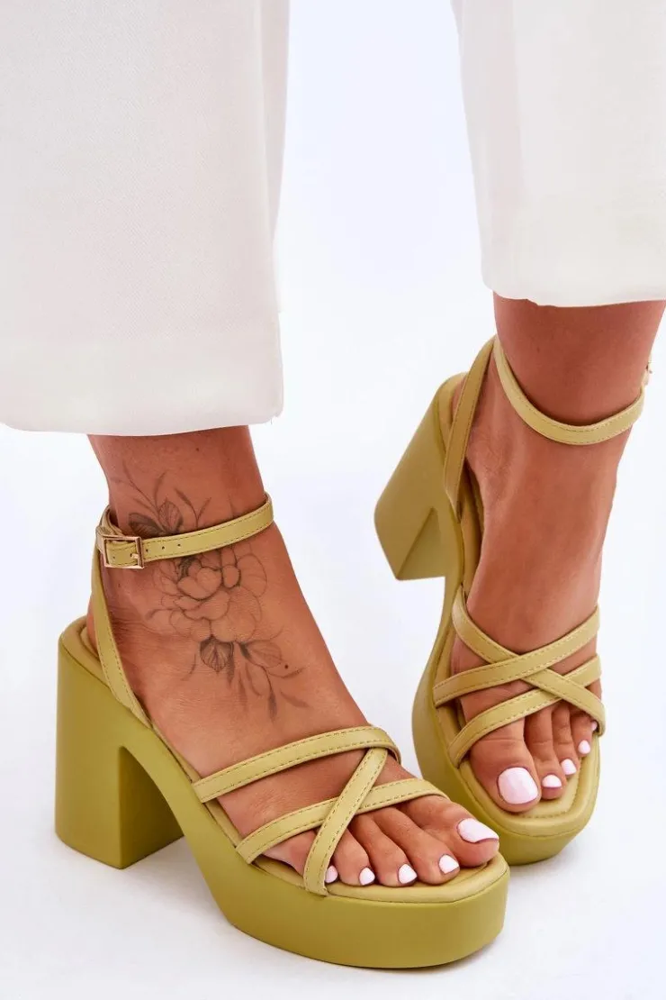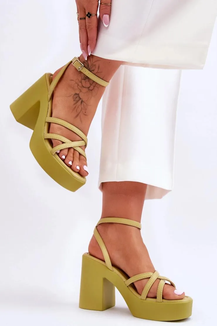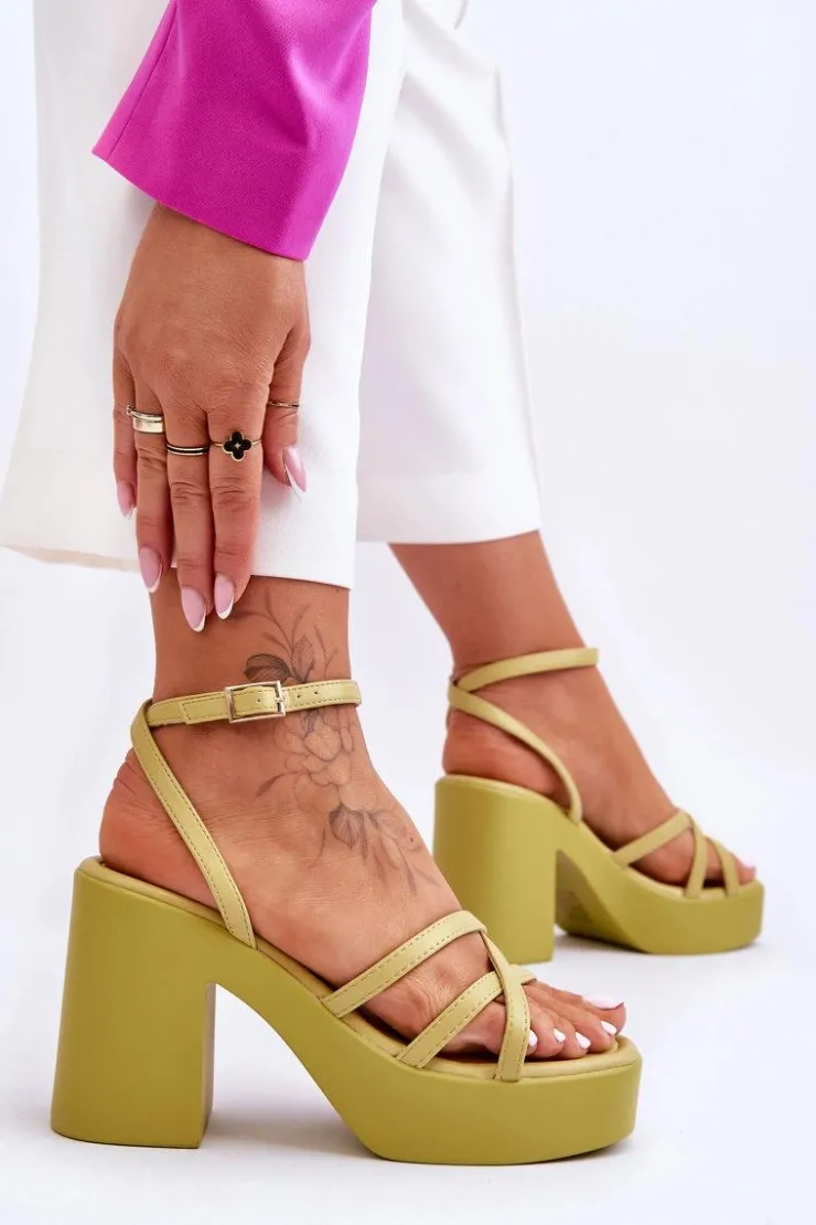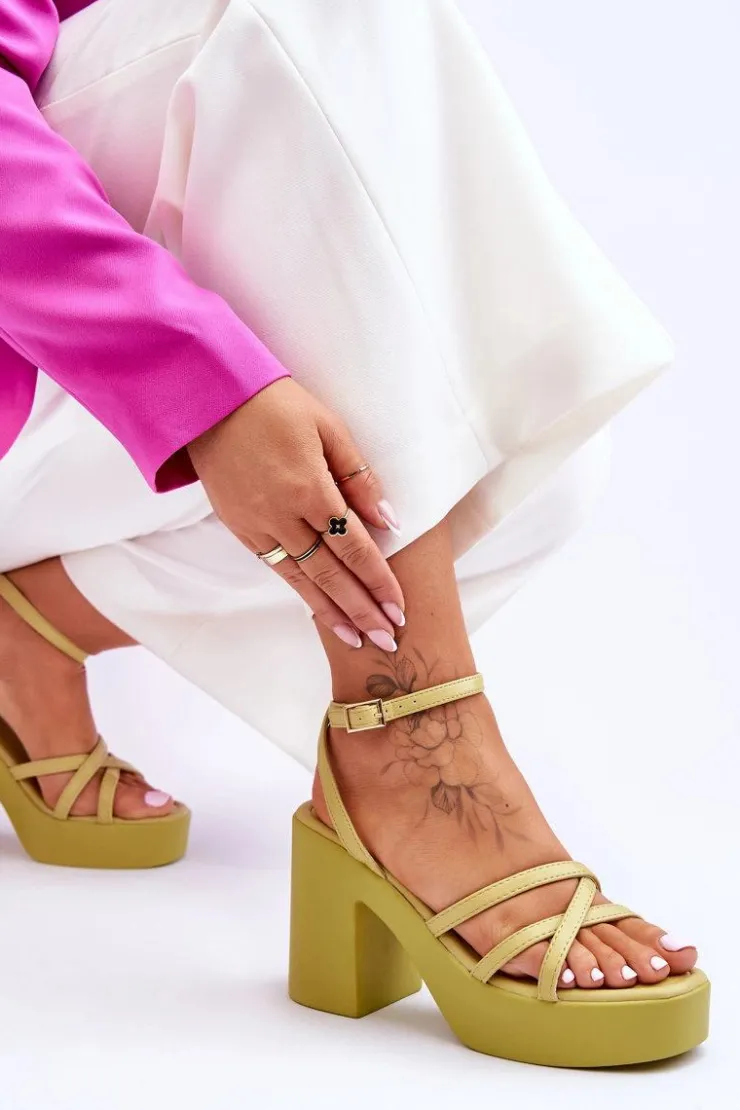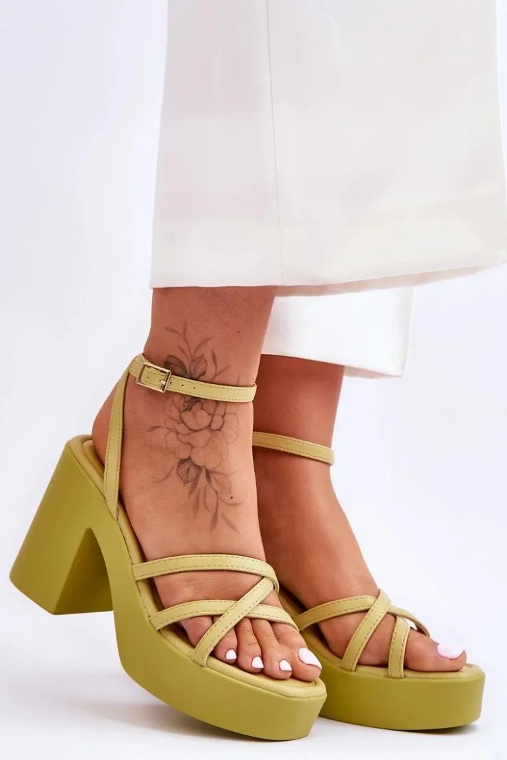 Wyjątkowe, damskie sandały zostały wykonane z eko skóry. Model ten posiada zapinanie wokół kostki na regulowany pasek ze sprzączką i jest niezwykle lekki. Sandałki osadzono na platformie oraz masywnym, szerokim słupku. Wygodna wkładka została wykonana także z eko skóry. Przy wyborze rozmiaru prosimy sugerować się tabelą rozmiarów.