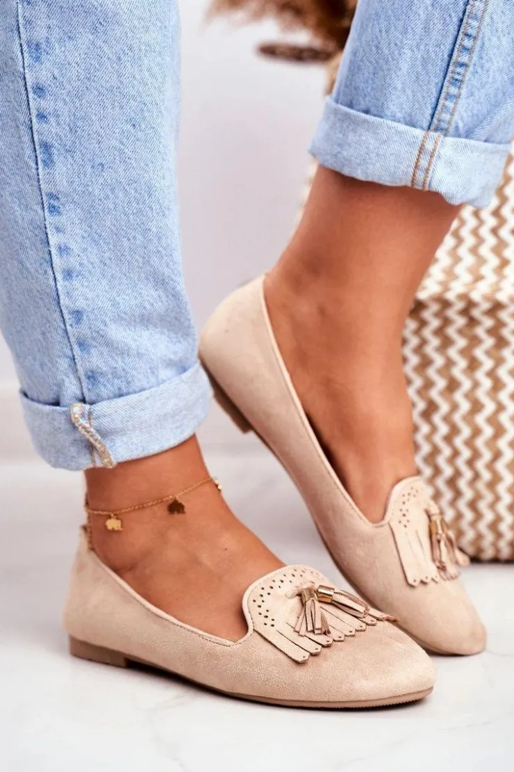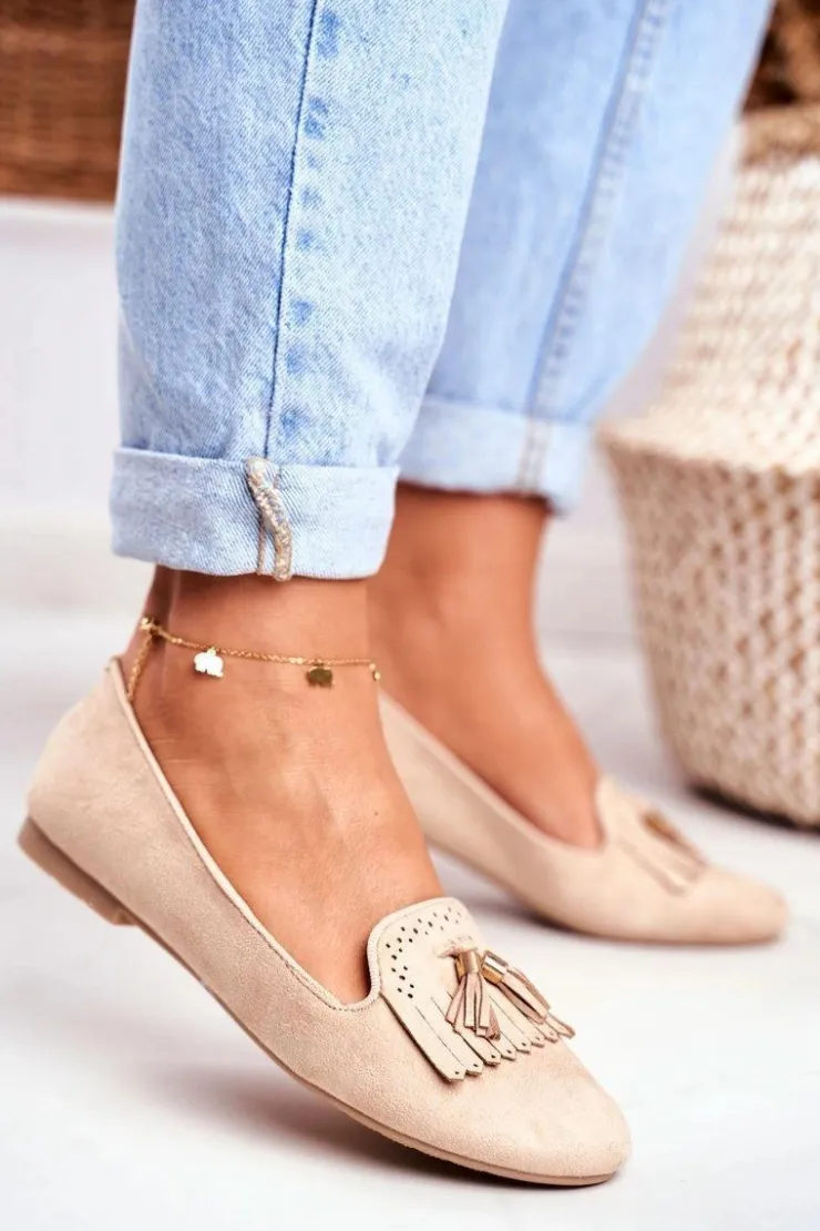 Best Boto Mokasyny Damskie Beżowe Lordsy Frędzle Therese