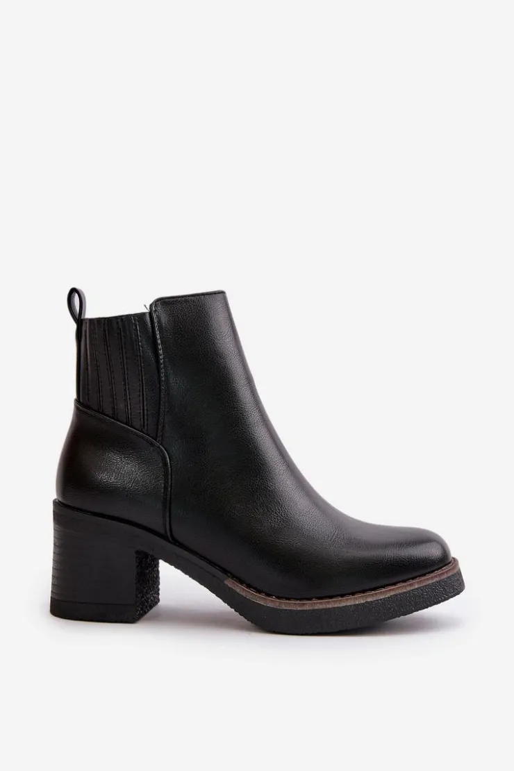 Klasyczne botki damskie wykonane z eko skóry to doskonały wybór na chłodniejsze dni. Wewnątrz ocieplone kocem obuwniczym, zapewniają ciepło i komfort nawet w niskich temperaturach. Osadzone na stabilnym obcasie słupku, łączą elegancję z wygodą noszenia. Praktyczne zapięcie na zamek ułatwia szybkie i wygodne zakładanie. Te botki to idealne uzupełnienie zarówno codziennych, jak i bardziej formalnych stylizacji. Przy wyborze rozmiaru prosimy sugerować się tabelą rozmiarów.