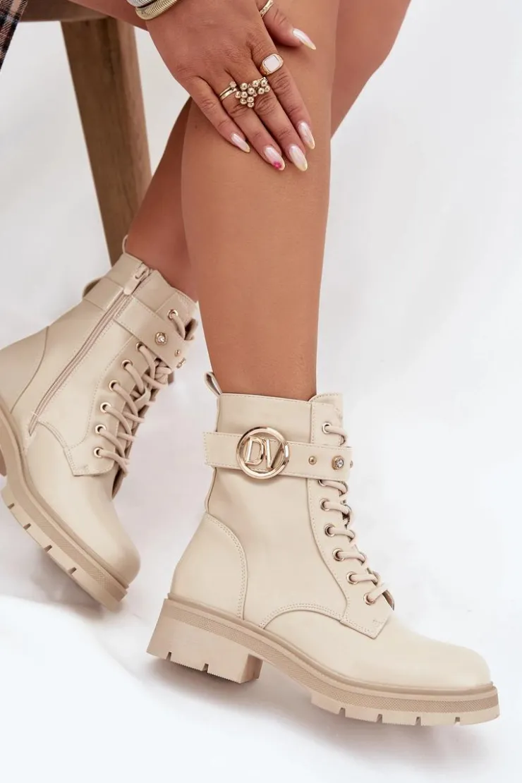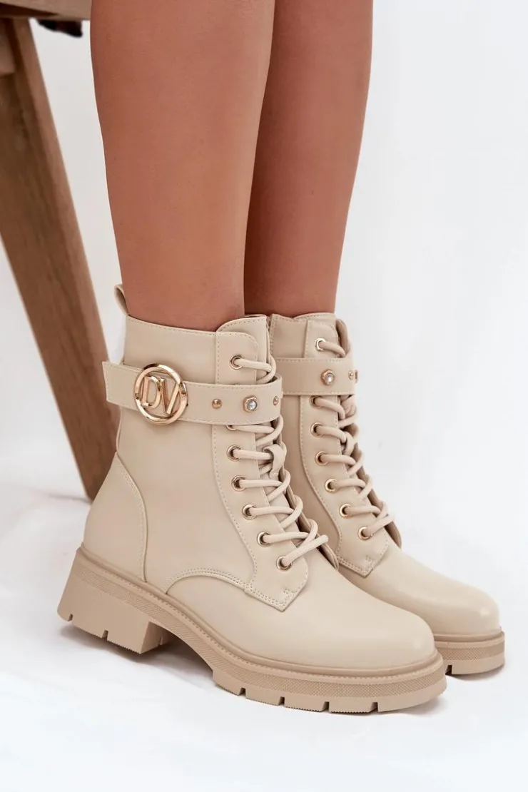 Botki workery damskie z eko skóry to połączenie wygody i modnego, miejskiego charakteru. Model sznurowany i zapinany na zamek zapewnia idealne dopasowanie oraz łatwe zakładanie. Ocieplenie miękkim kocem obuwniczym gwarantuje ciepło w chłodniejsze dni, a pasek ze złotymi ozdobami dodaje subtelnego, efektownego akcentu, który wyróżnia buty w codziennych stylizacjach. Przy wyborze rozmiaru prosimy sugerować się tabelą rozmiarów.