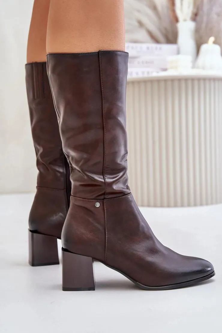 Best Boto Ocieplnae Kozaki Na Słupku Eko Skórzane Do Połowy Łydki Brązowe Ellithira Brązowy