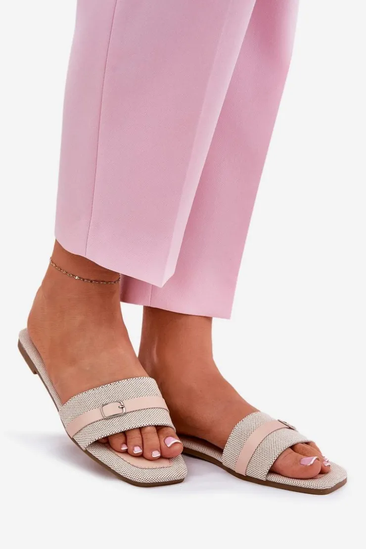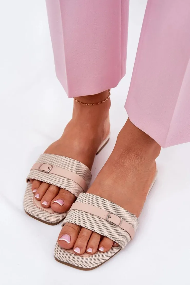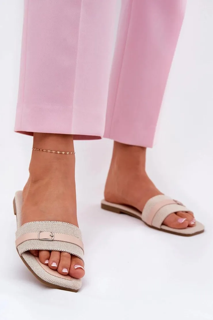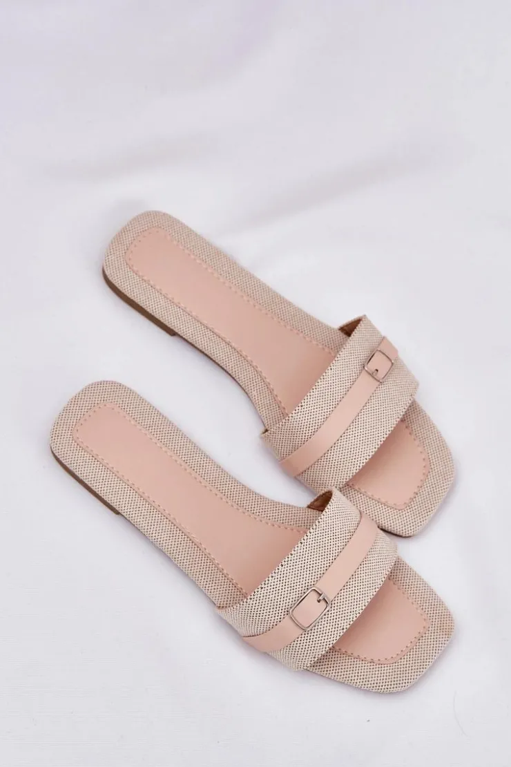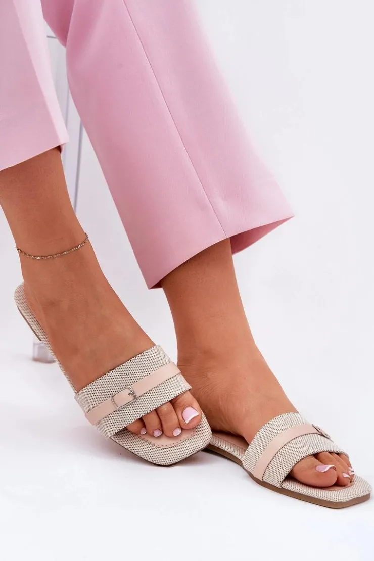 Best Boto Płaskie Klapki Damskie Z Paskiem I Sprzączką Beżowe Zilina Beżowy