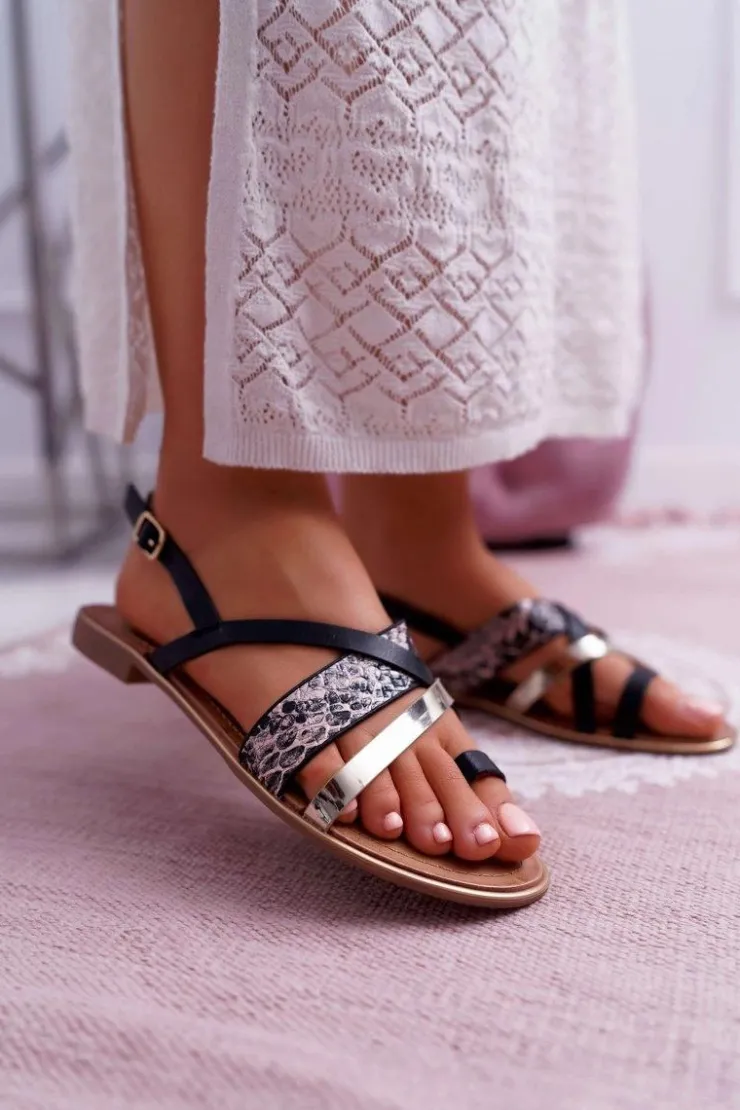Best Boto Sandały Damskie Płaskie Eleganckie Czarne Beathe