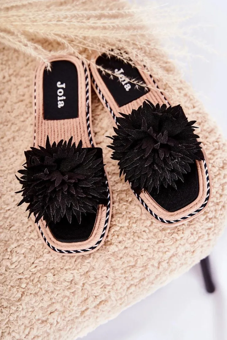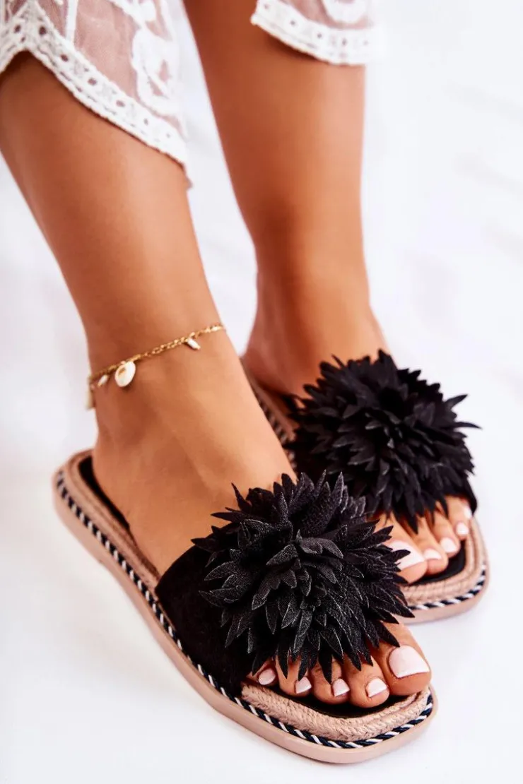 Klapki damskie z efektowną ozdobą na przodzie. Wykonane z eko zamszu, natomiast ozdoba z tkaniny. Wkładka oraz podeszwa są wykonane z gumowego tworzywa. Nosek odkryty, lekko kwadratowy. Zdobienie w postaci sznurka wokół podeszwy. Klapki osadzone na płaskim obcasie, z antypoślizgową podeszwą. Klapki są przewiewne, więc świetnie sprawdzą się w upalne dni! Model, który powinnaś mieć ! Nie czekaj i kup! Przy wyborze rozmiaru prosimy sugerować się tabelą rozmiarów.