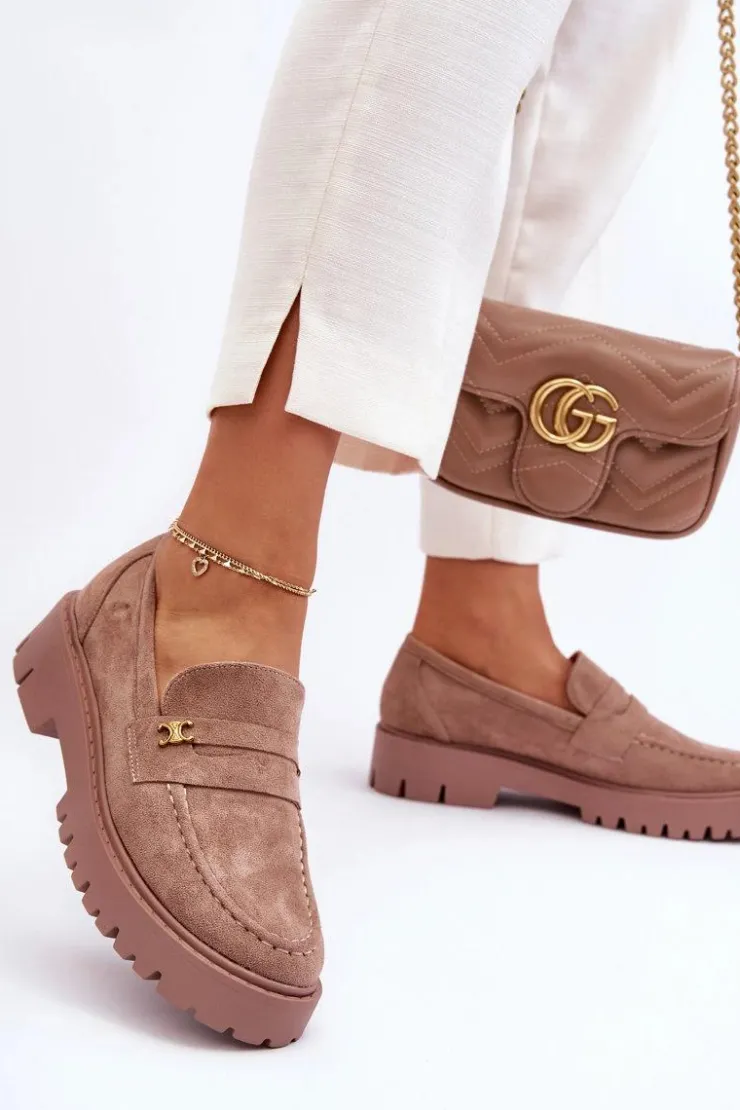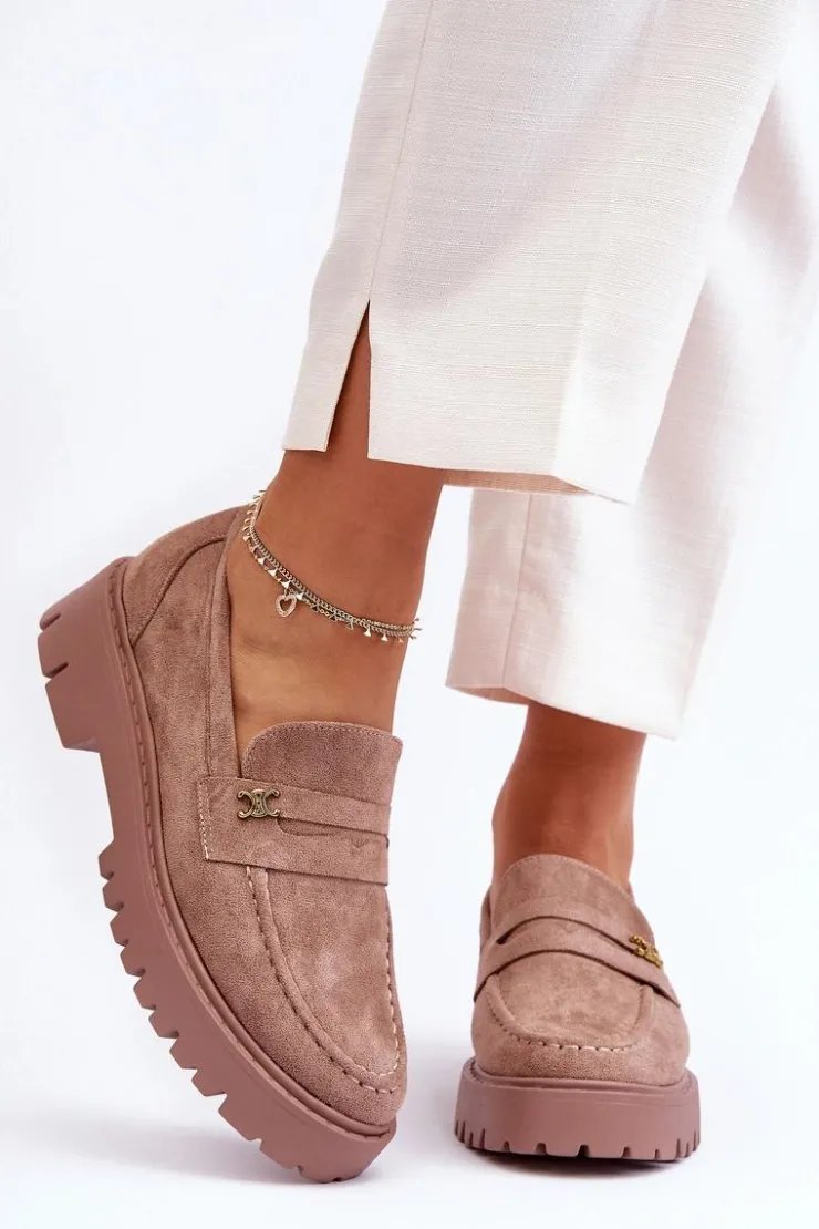Damskie mokasyny to idealne obuwie na wiele okazji! Osadzono je na platformie i płaskim obcasie. Buty te posiadają delikatnie usztywniany zapiętek oraz wkładkę z eko skóry. Pasku z przodu posiada wycięcie oraz delikatną ozdobę. Ten model z pewnością przypadnie Ci do gustu! Przy wyborze rozmiaru prosimy sugerować się tabelą rozmiarów.