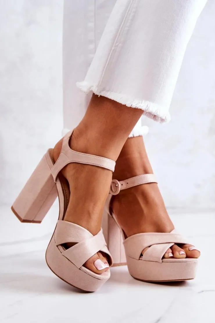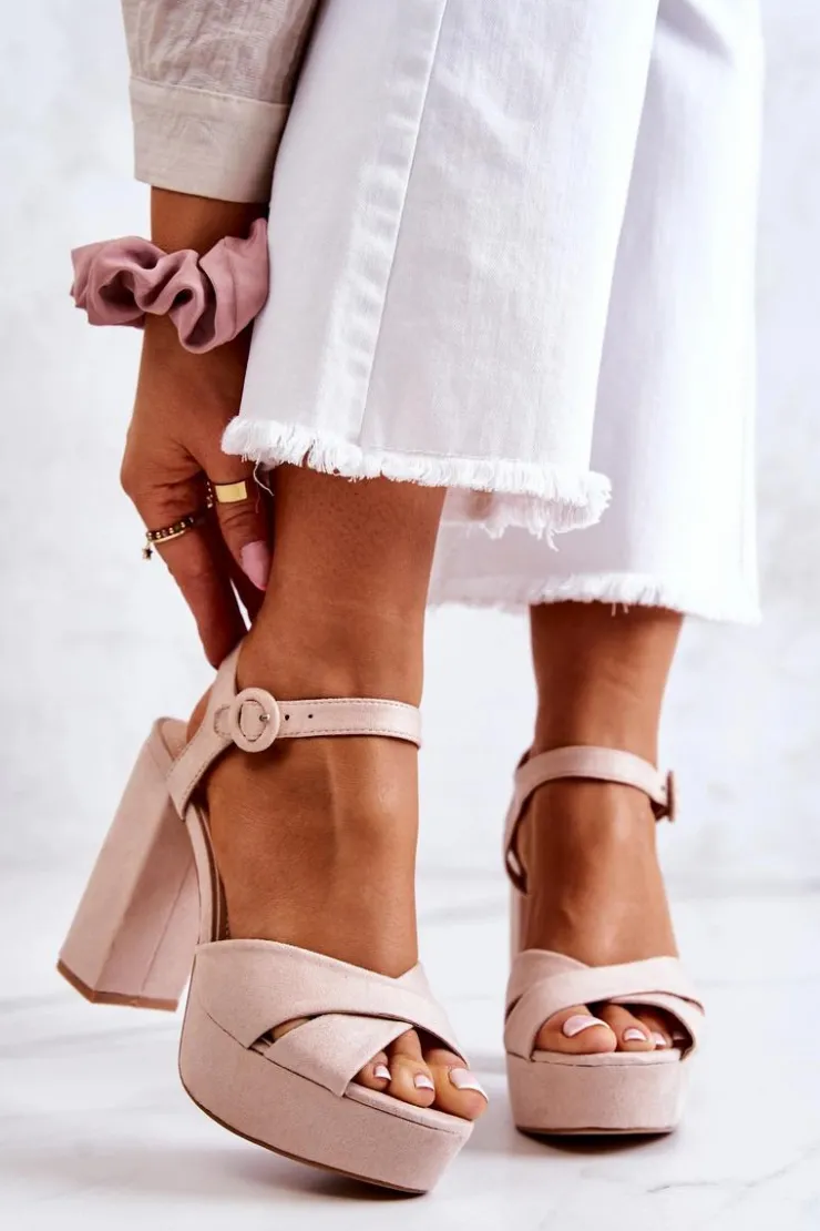 Świetne sandałki wykonane z zamszowej eko skóry. Posiadają wysoki obcas w postaci słupka oraz platformę. Regulowany pasek zapinany na sprzączkę. Idealny model na różnego rodzaju okazje! Sandałki posiadają eko skórzaną, miękką wkładkę. Koniecznie musisz je mieć! Przy wyborze rozmiaru prosimy kierować tabelą rozmiarów.