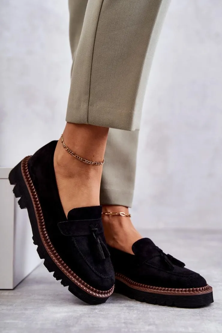 Klasyczne półbuty zostały wykonane z wysokiej jakości zamszowej skóry ekologicznej. Na przodzie charakterystyczne zdobienie w postaci frędzelka. Buty te posiadają platformę oraz płaski obcas. Podeszwa ze żłobieniami świetnie odizoluje od nierównego podłoża. Świetny model do wielu stylizacji! Wygodne, a zarazem modne. Koniecznie musisz je mieć! Przy wyborze rozmiaru prosimy sugerować się tabelą rozmiarów.