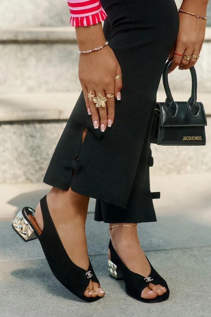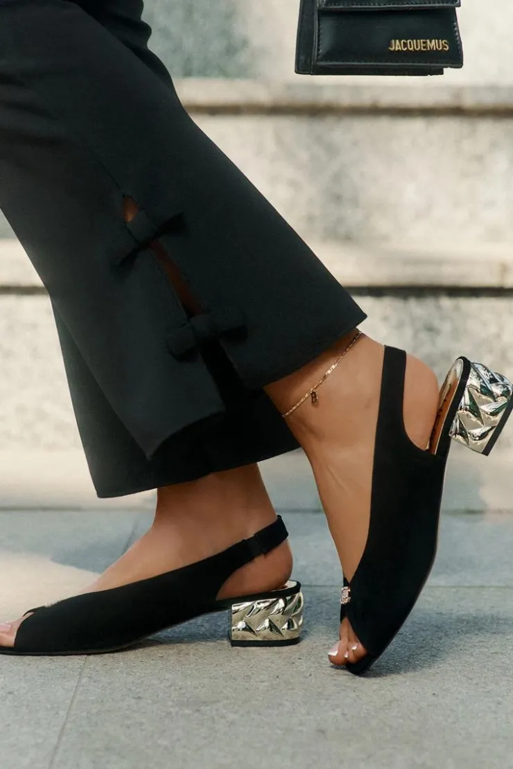 Sandały damskie od marki CheBello. Wykonane z wysokiej jakości naturalnego zamszu. Model ten wyróżnia się obcasem, który nadaje nowoczesnego charakteru. Z przodu znajduje się mały, ozdobny detal. Niezwykle elegancki fason, który doskonale dopełni stylizacje z sukienkami oraz spodniami. Doskonałe na różne uroczystości i wieczorne wyjścia. Przy wyborze rozmiaru prosimy sugerować się tabelą rozmiarów.