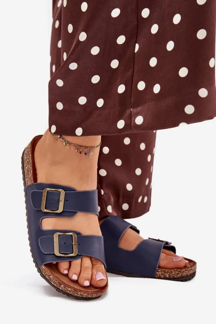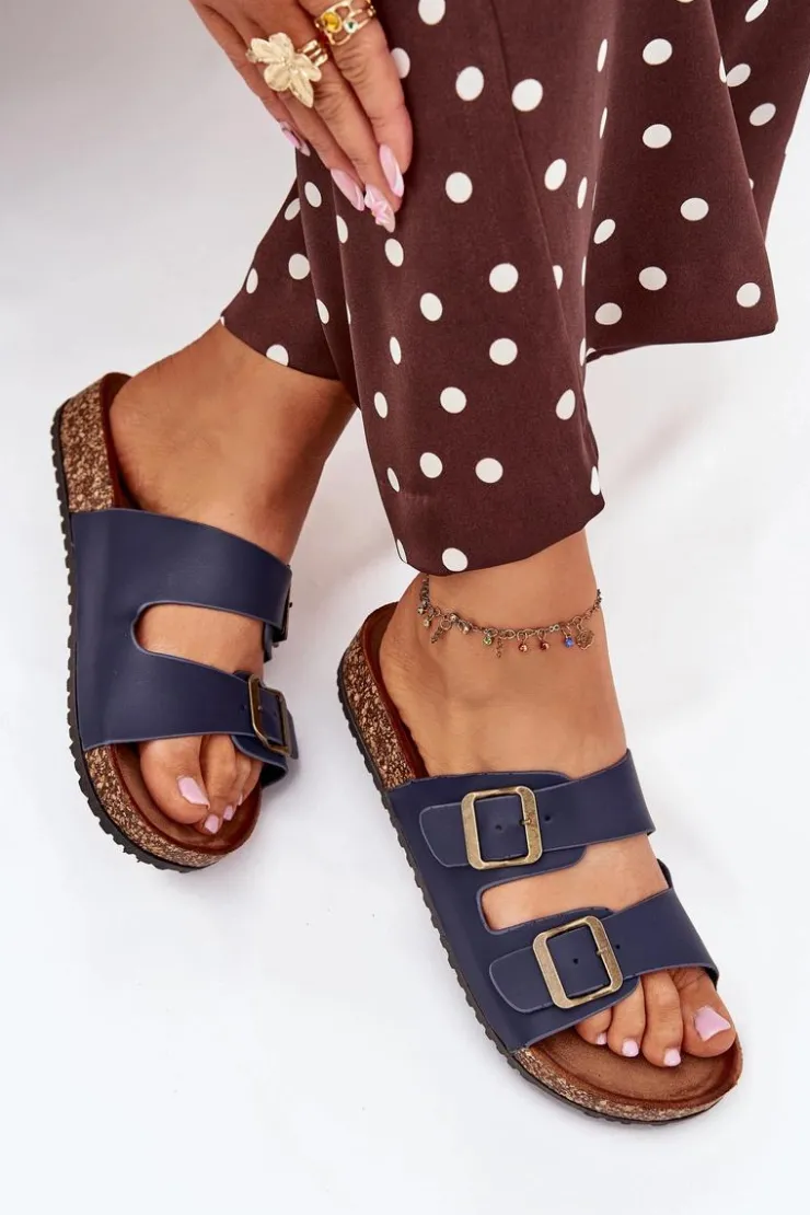 Klapki damskie na korkowej platformie z profilowaną eko zamszową wkładką to połączenie komfortu i modnego wyglądu. Dwa paski z regulowanymi klamrami zapewniają idealne dopasowanie, a ich nowoczesny fason wpisuje się w najnowsze trendy tego sezonu. Doskonałe do letnich stylizacji, świetnie komponują się z sukienkami, spódnicami czy spodniami, dodając każdej kreacji lekkości. Przy wyborze rozmiaru rosimy sugerować się tabelą rozmiarów.