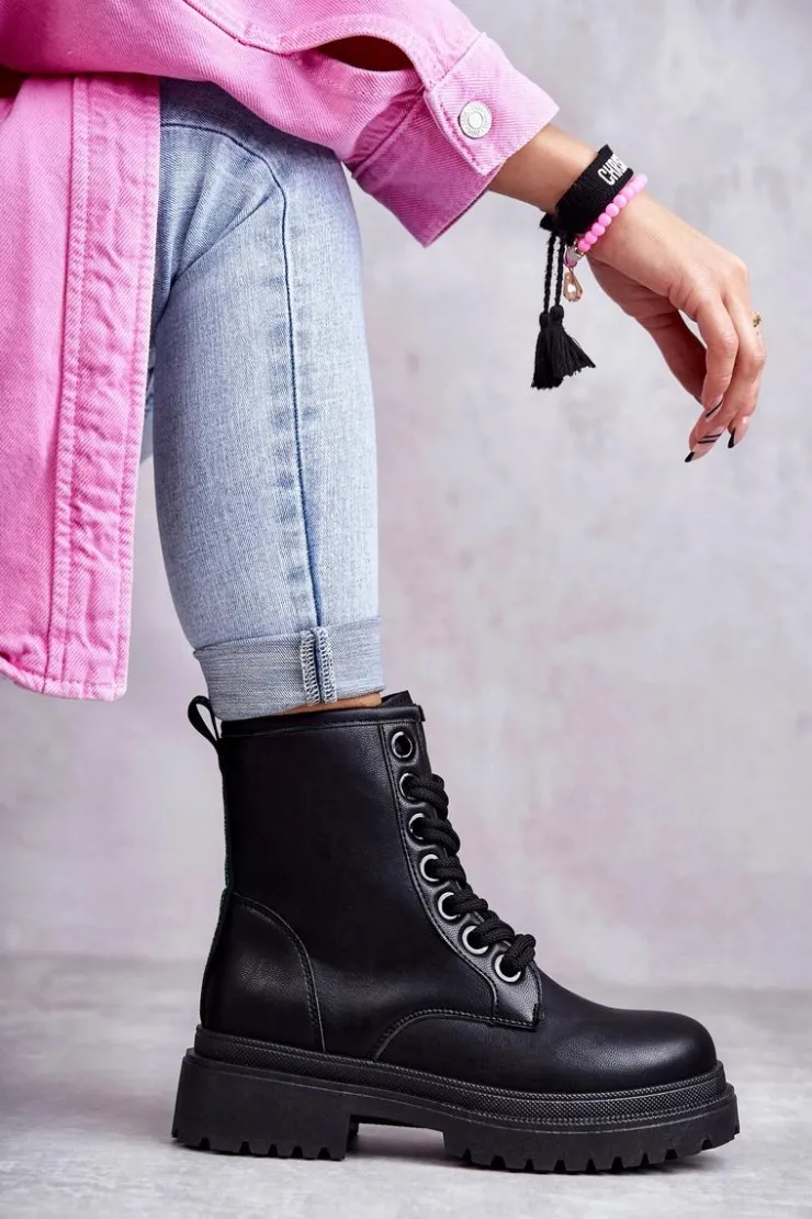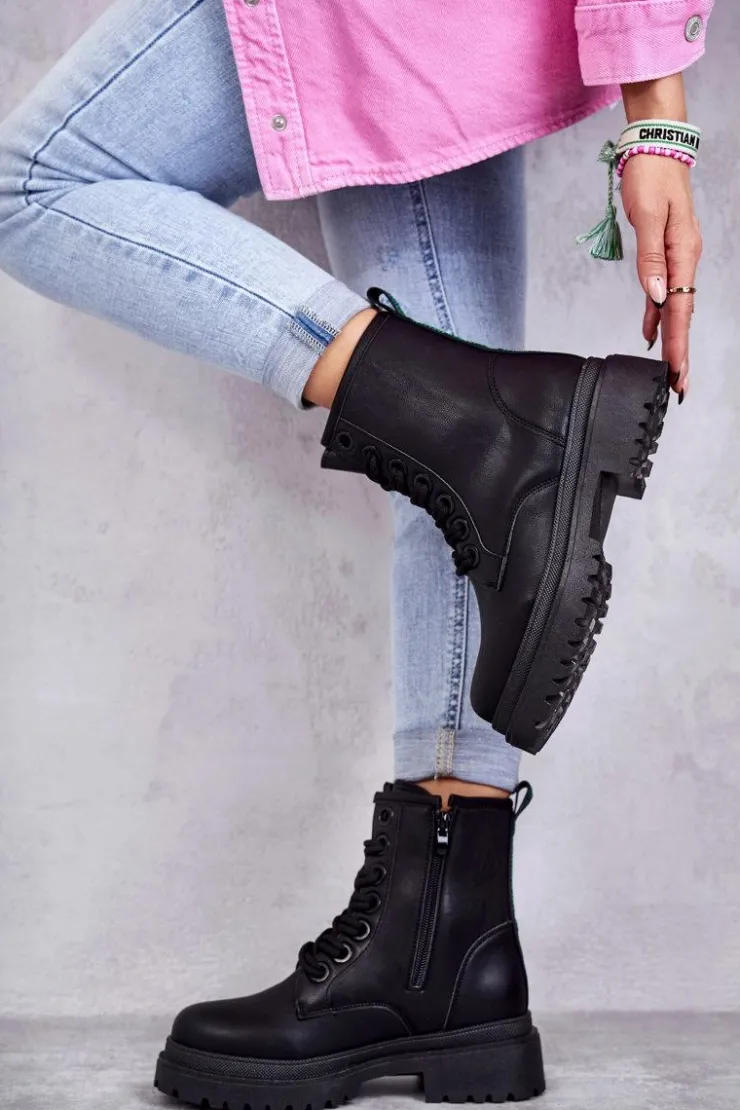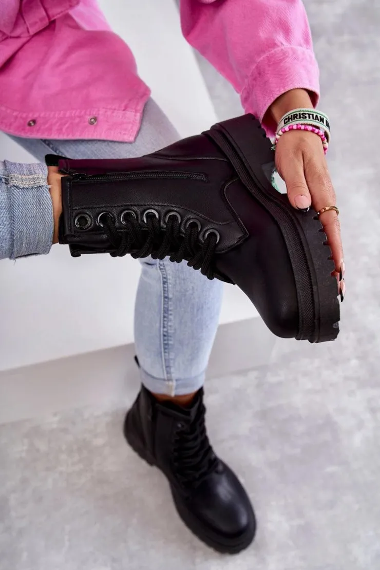 Klasyczne botki damskie zostały wykonane z eko skóry. Posiadają suwak z boku cholewki oraz podwójne sznurowanie. Modne, a zarazem wygodne. Botki osadzono na płaskim obcasie z bieżnikiem. Posiadają w środku ocieplenie w postaci koca obuwniczego. Dodatkowo zapiętek jest usztywniany. Te botki powinny znaleźć się w Twojej szafie! Przy wyborze rozmiaru prosimy sugerować się tabelą rozmiarów.