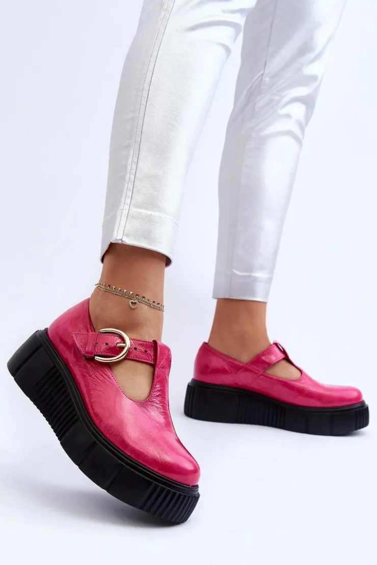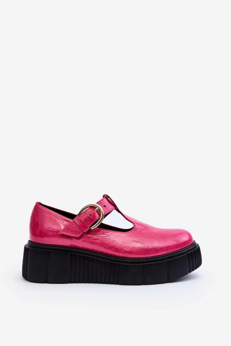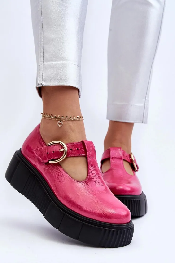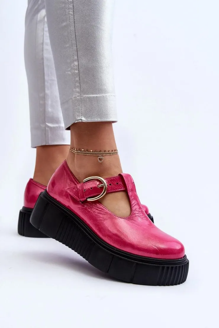 Modne półbuty damskie posiadają masywną platformę ze żłobieniami po bokach. Cholewka przed kostkę została wykonana z naturalnej skóry. Półbuty te posiadają usztywniany zapiętek. Zapinane z boku cholewki na klamrę z regulowanym paskiem. Ten model świetnie podkreśli Twoje stylizacje! Musisz go mieć! Przy wyborze rozmiaru prosimy sugerować się tabelą rozmiarów.