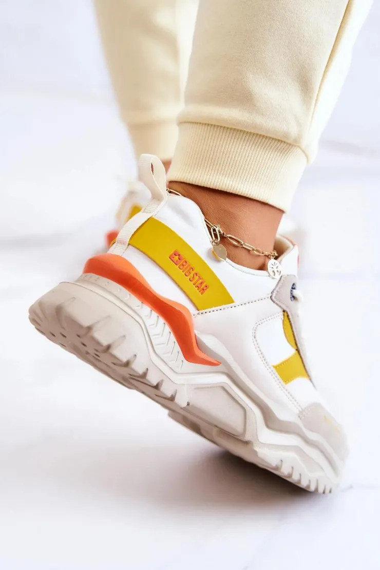 Damskie sportowe buty od polskiej marki Big Star. Cholewka wykonana jest z połączenia przewiewnej tkaniny, eko skóry oraz naturalnego zamszu. Model wiązany na okrągłe sznurowadła. Miękka, materiałowa wkładka. Buty są bardzo lekkie i wygodne w użytkowaniu. Platforma wykonana z tworzywa sztucznego. Sneakersy świetnie sprawdzą się na co dzień do sportowych outfitów. Koniecznie sprawdź całą naszą kolekcję butów BIG STAR. Przy wyborze rozmiaru prosimy sugerować się tabelą rozmiarów.