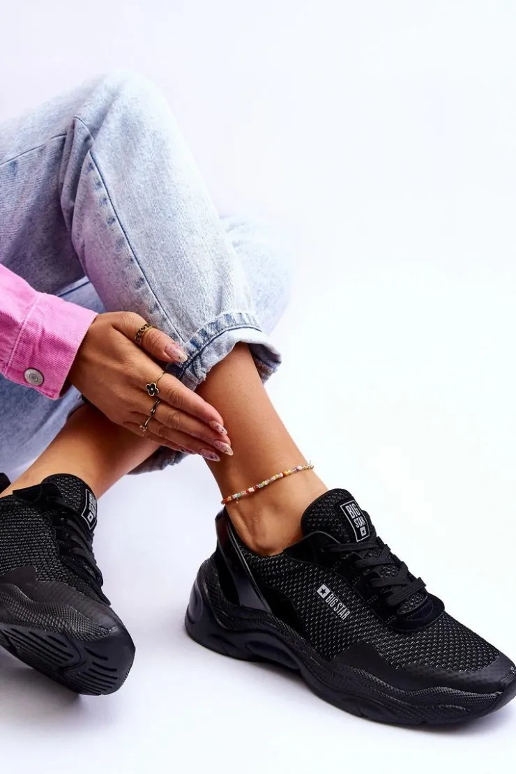 Damskie sneakersy marki Big Star zostały wykonane z połączenia tkaniny oraz eko skóry. Buty posiadają także wzmocniony zapiętek. Sneakersy posiadają wkładkę Memory Foam System, która zapamiętuje kształt stopy, zapewnia doskonałe dopasowanie, absorbuje wstrząsy, jest odporna na odkształcenia oraz pozwala na odparowanie wilgoci i regulację temperatury. Buty zostały osadzone na platformie i płaskim obcasie. Przy wyborze rozmiaru prosimy sugerować się tabelą rozmiarów.