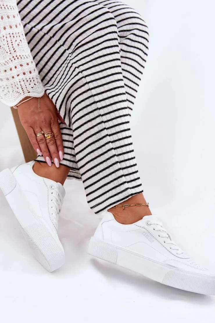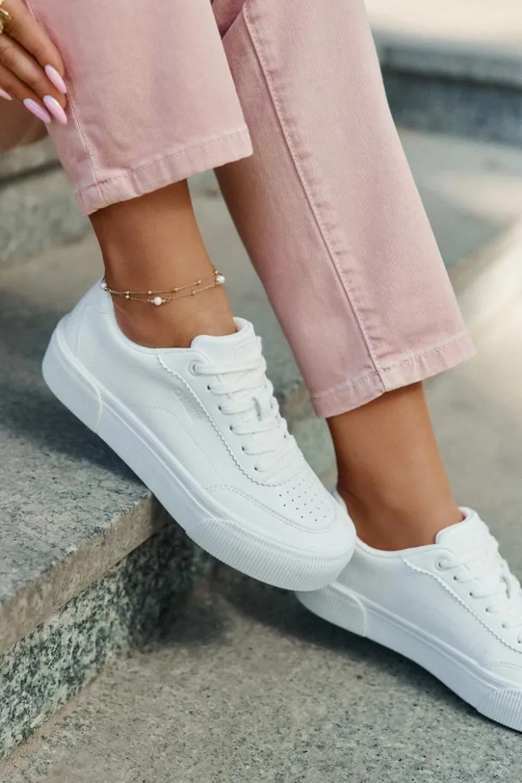 Damskie sneakersy od marki Big Star, wykonane z wysokiej jakości eko skóry, to doskonałe połączenie stylu i komfortu. Osadzone na platformie, zapewniają stabilność i lekkość podczas chodzenia. Zaokrąglone noski gwarantują wygodę przez cały dzień, a miękka wkładka dba o odpowiednią amortyzację, sprawiając, że sneakersy są idealnym wyborem do codziennych stylizacji. Te buty łączą nowoczesny design z funkcjonalnością, będąc świetnym uzupełnieniem garderoby. Przy wyborze rozmiaru prosimy sugerować się tabelą rozmiarów.