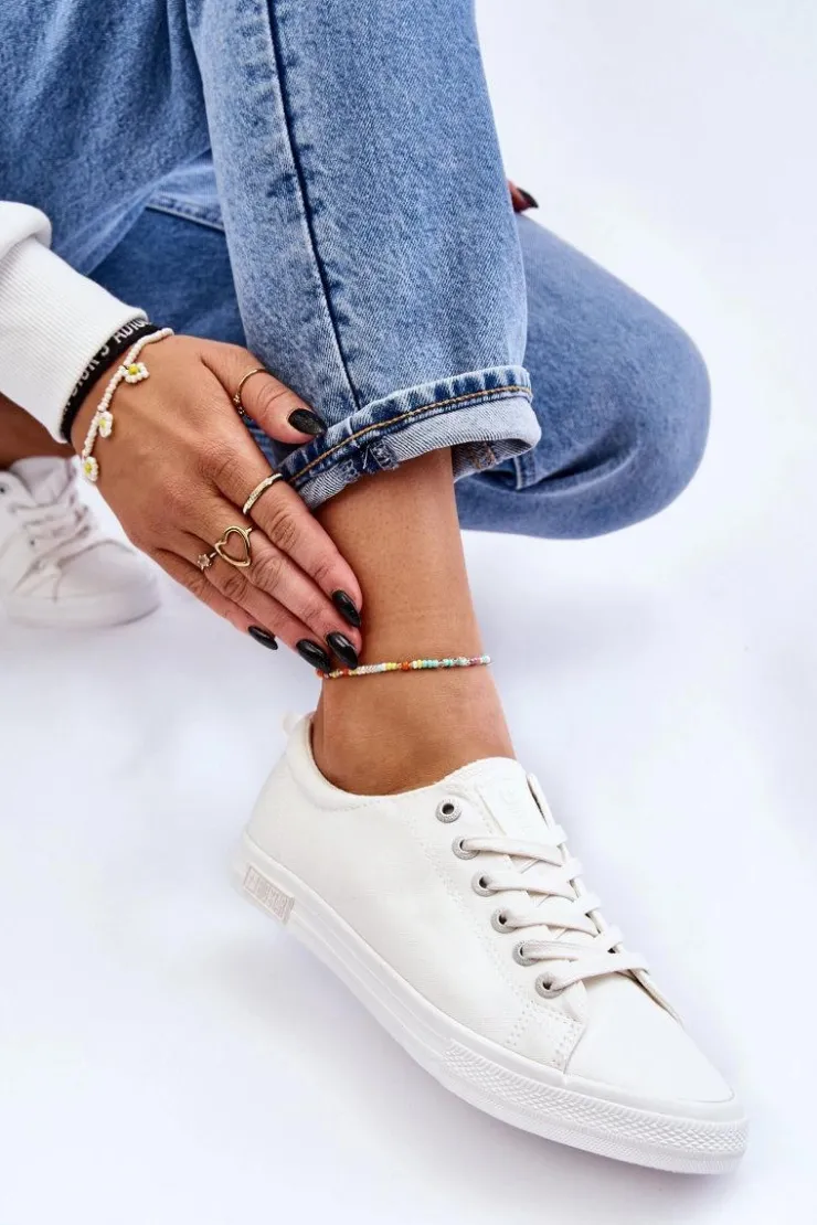 Big Star Shoes Damskie Gładkie Niskie Trampki Big Star LL274058 Białe Biały