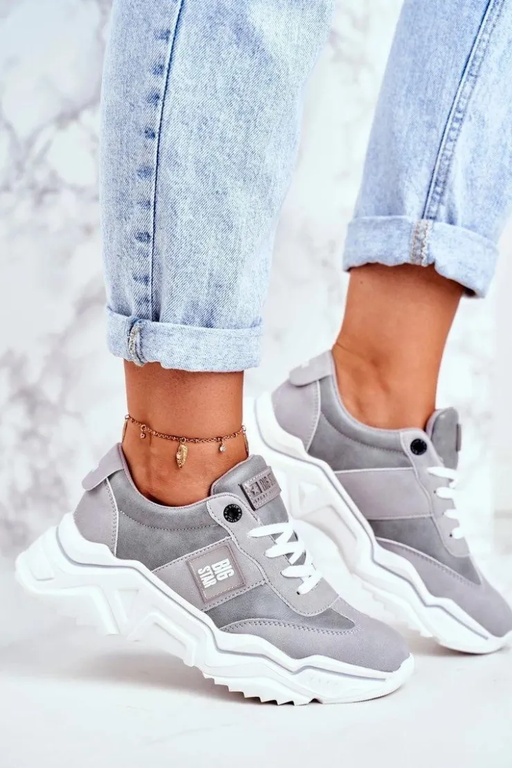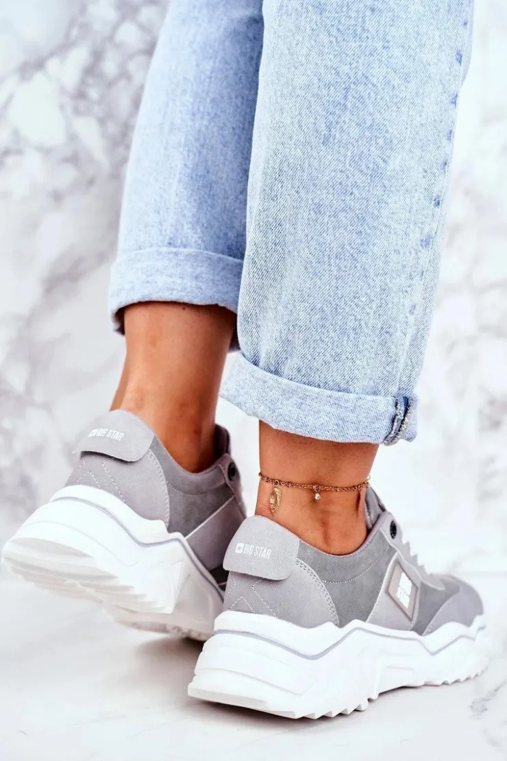 Wyjątkowe sportowe buty damskie od polskiej marki BIG STAR. Buty wykonane są z połączenia eko skóry oraz eko zamszu. Sneakersy są niesamowicie lekkie i komfortowe! Przy wyborze rozmiaru prosimy sugerować się tabelą rozmiarów.